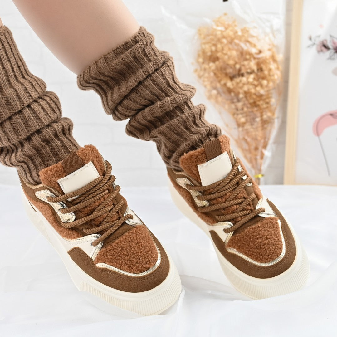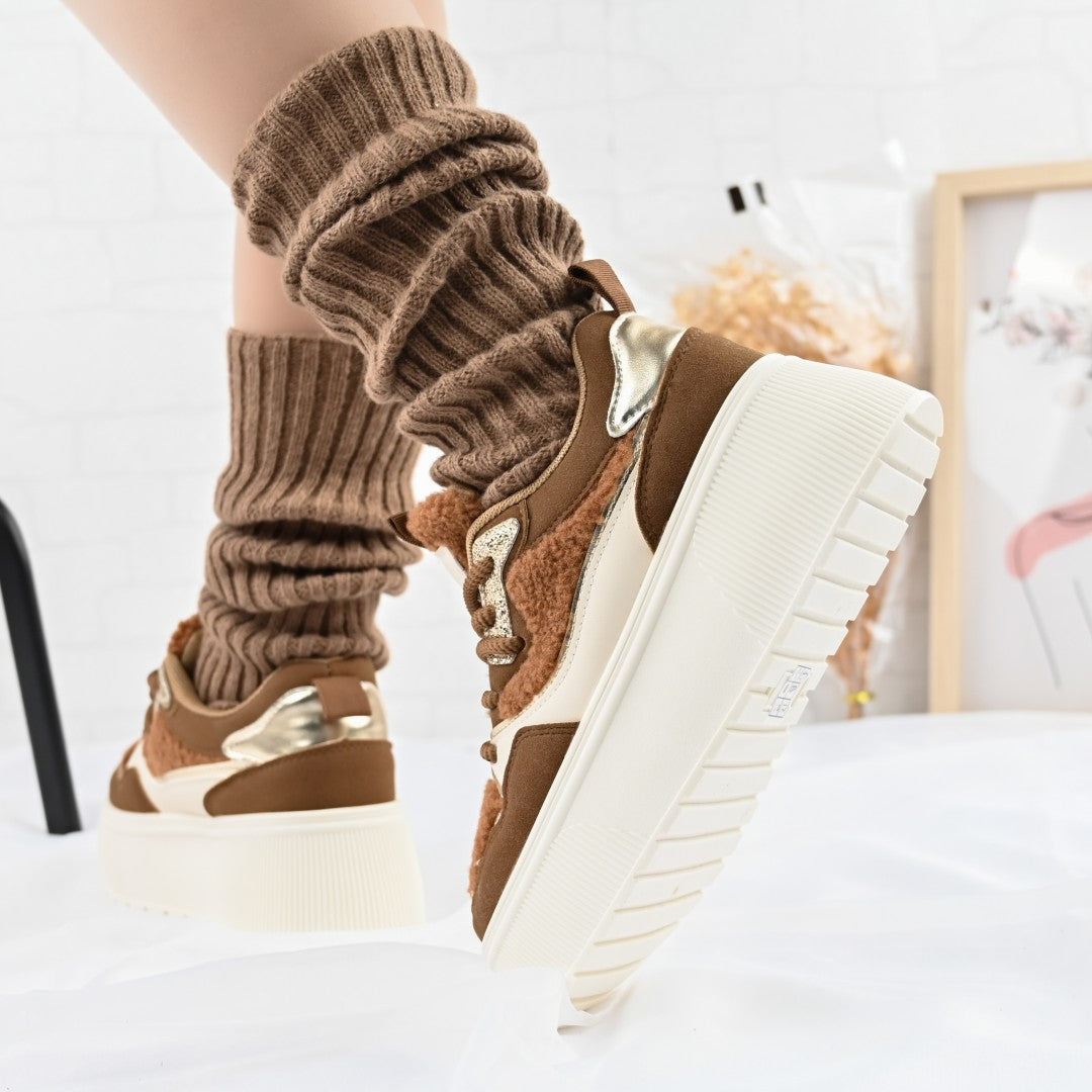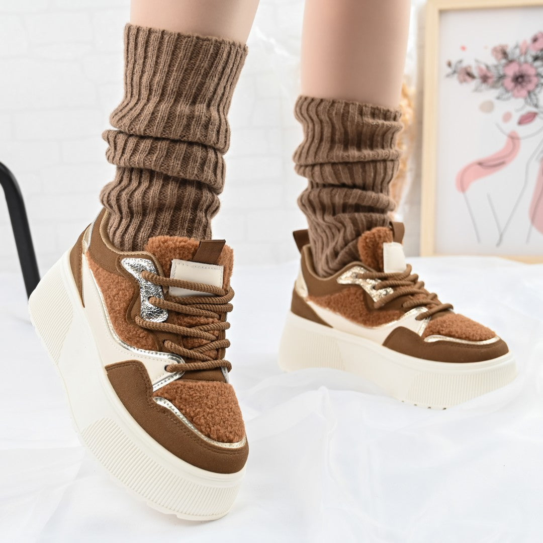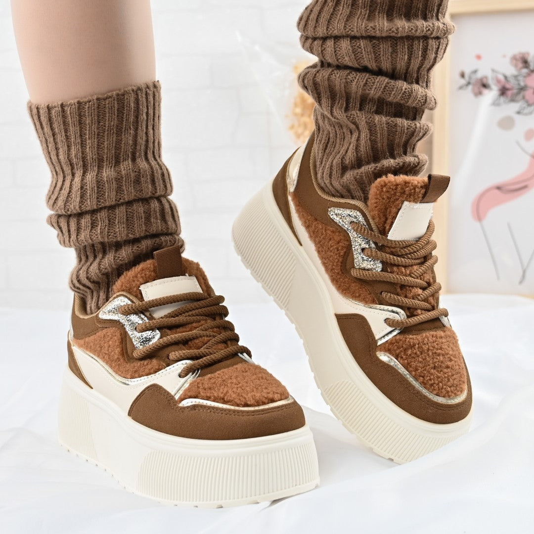 Pantofi Sport De Dama,Cu Platforma,Din piele ecologica intoarsa,D1409,Maro
