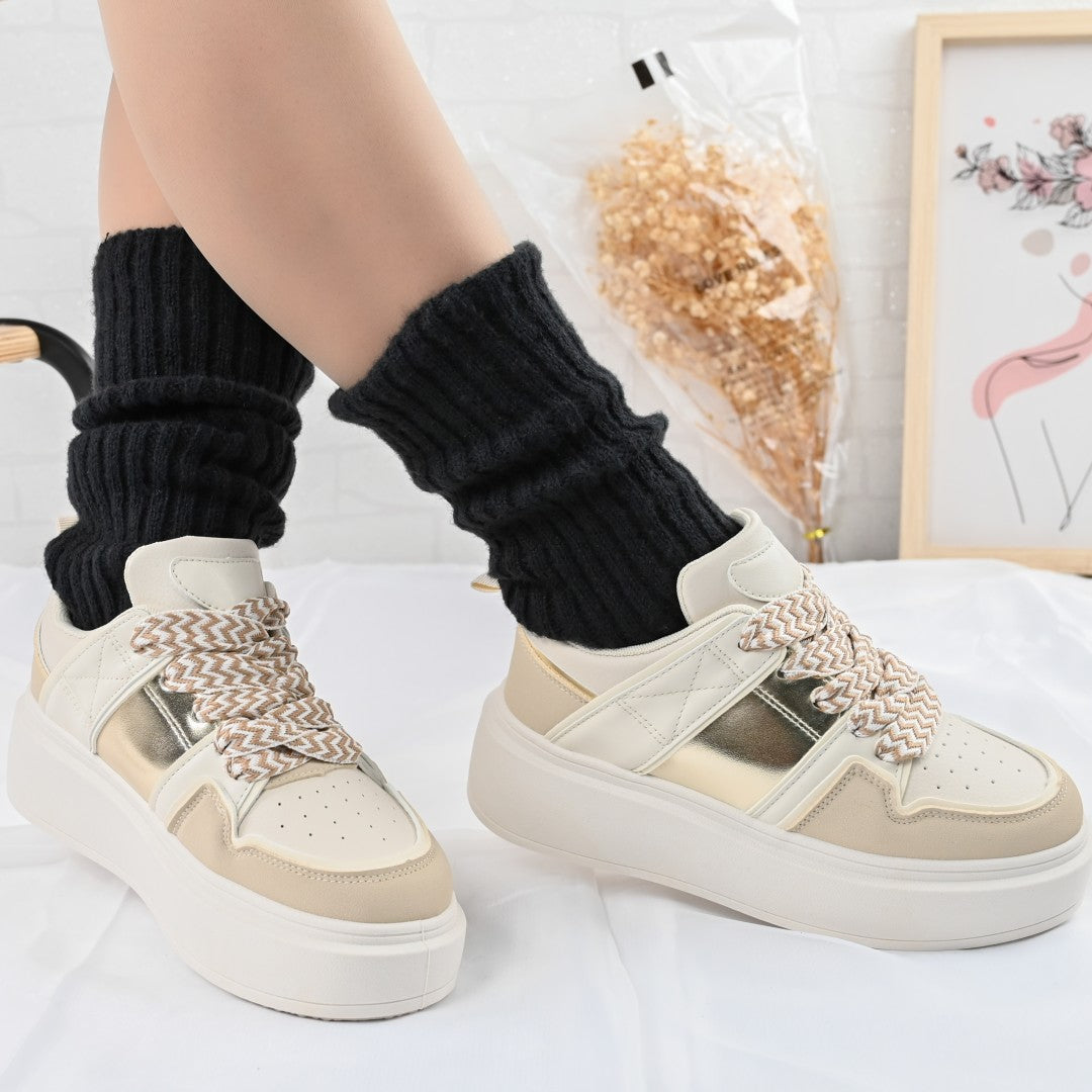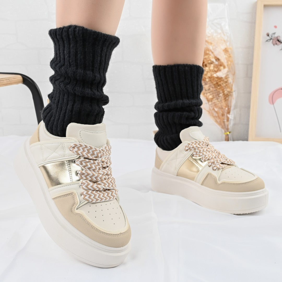 Pantofi sport de dama,D1308,Din piele ecologica,Beige
