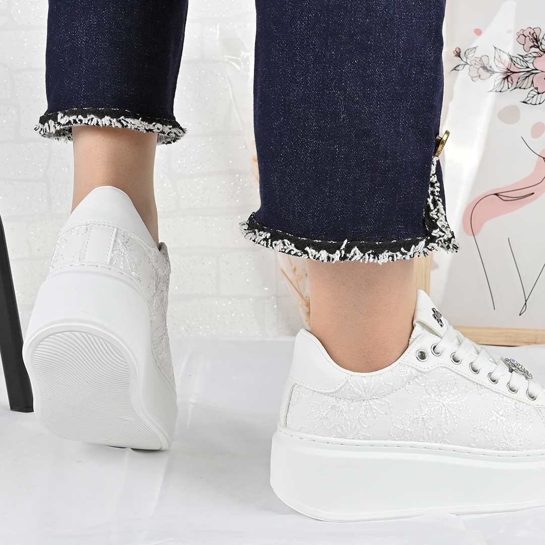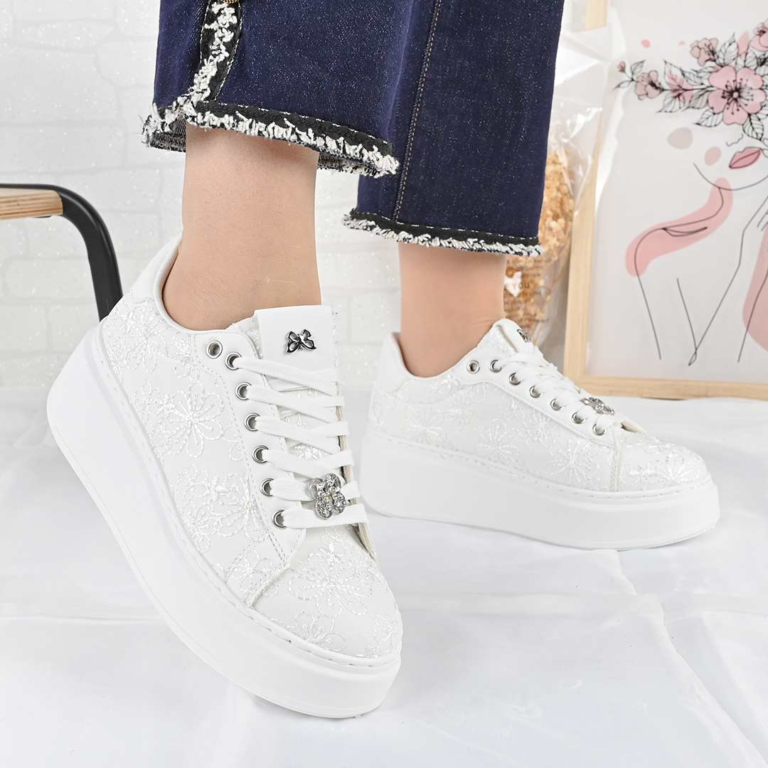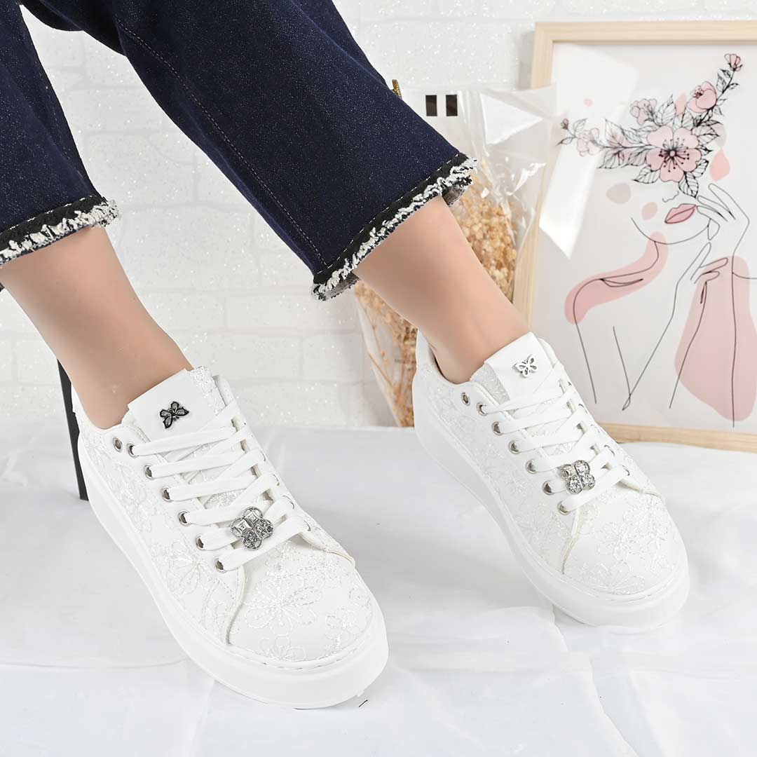 Pantofi Sport De Dama,Din material textil,D1486,Alb
