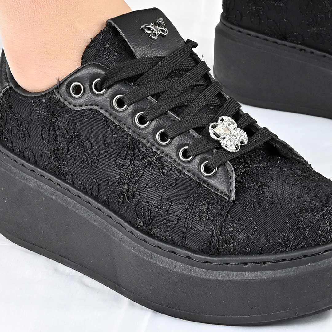 Pantofi Sport De Dama,Din material textil,D1486,Negru
