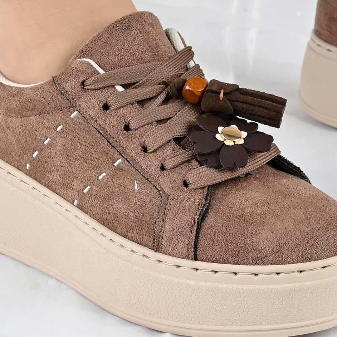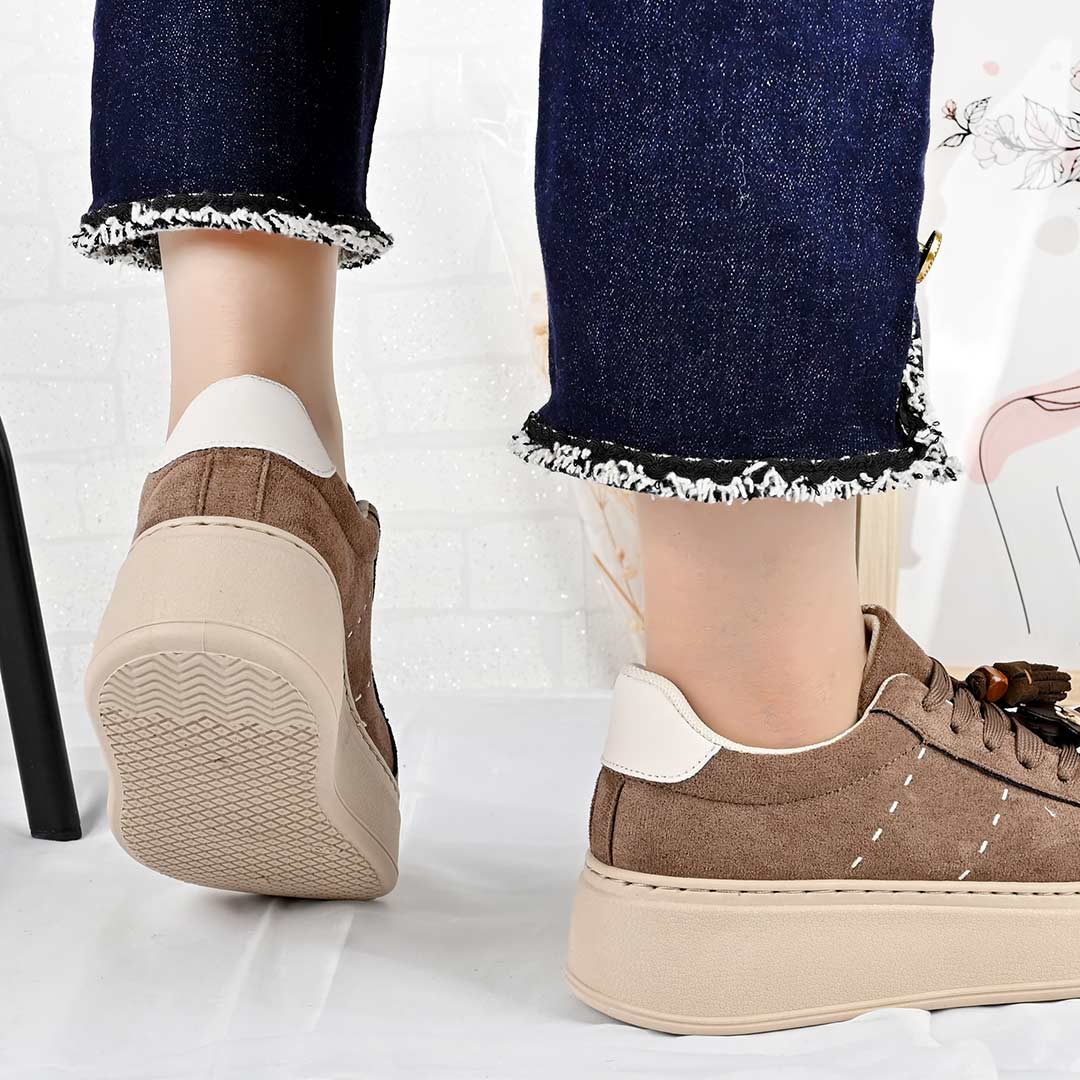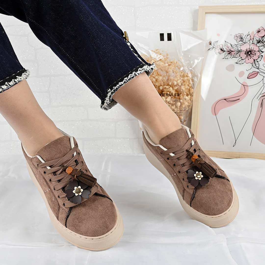 Pantofi Sport De Dama,Din Piele ecologica,cu Accesorii,D1487,Maro