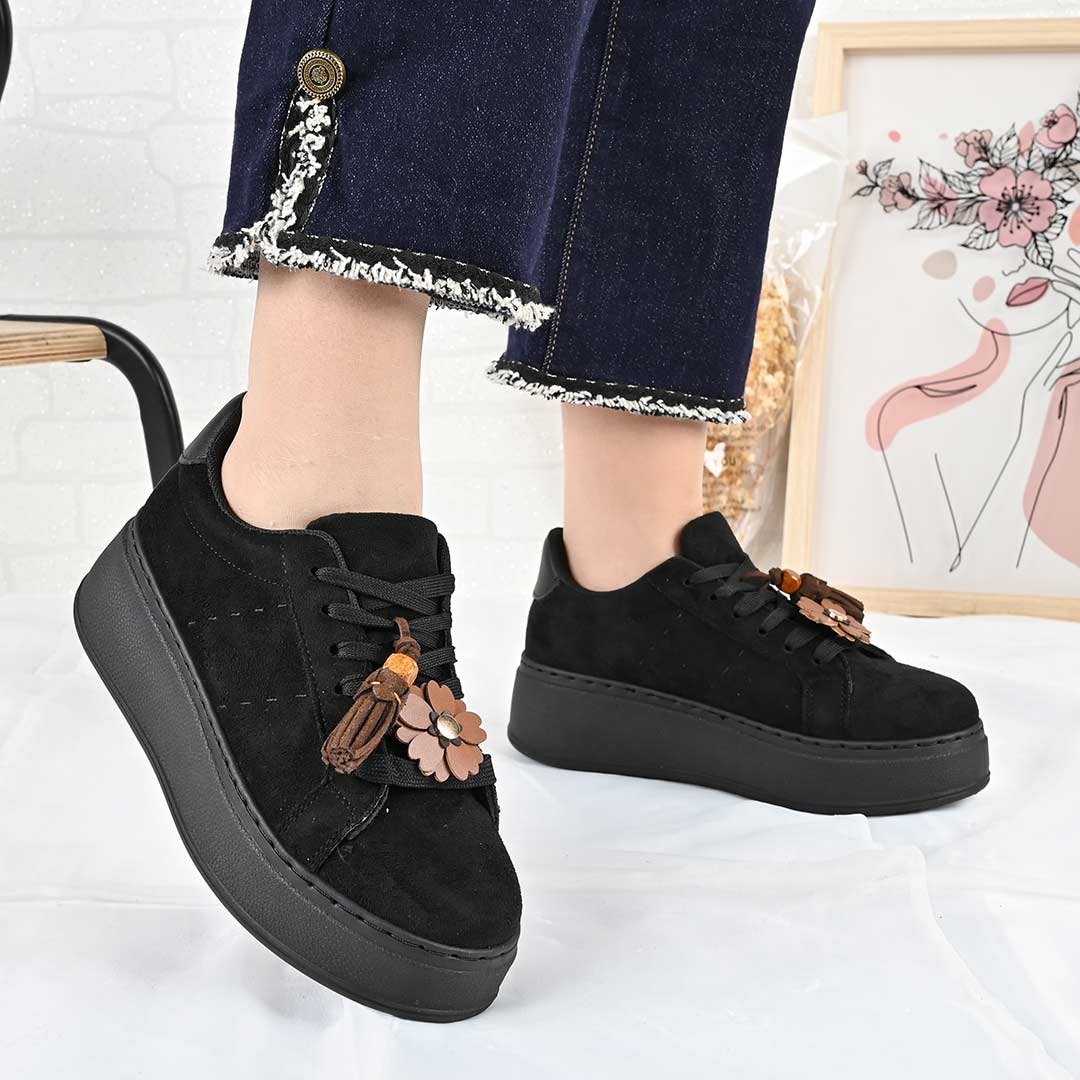 Pantofi Sport De Dama,Din Piele ecologica,cu Accesorii,D1487,Negru