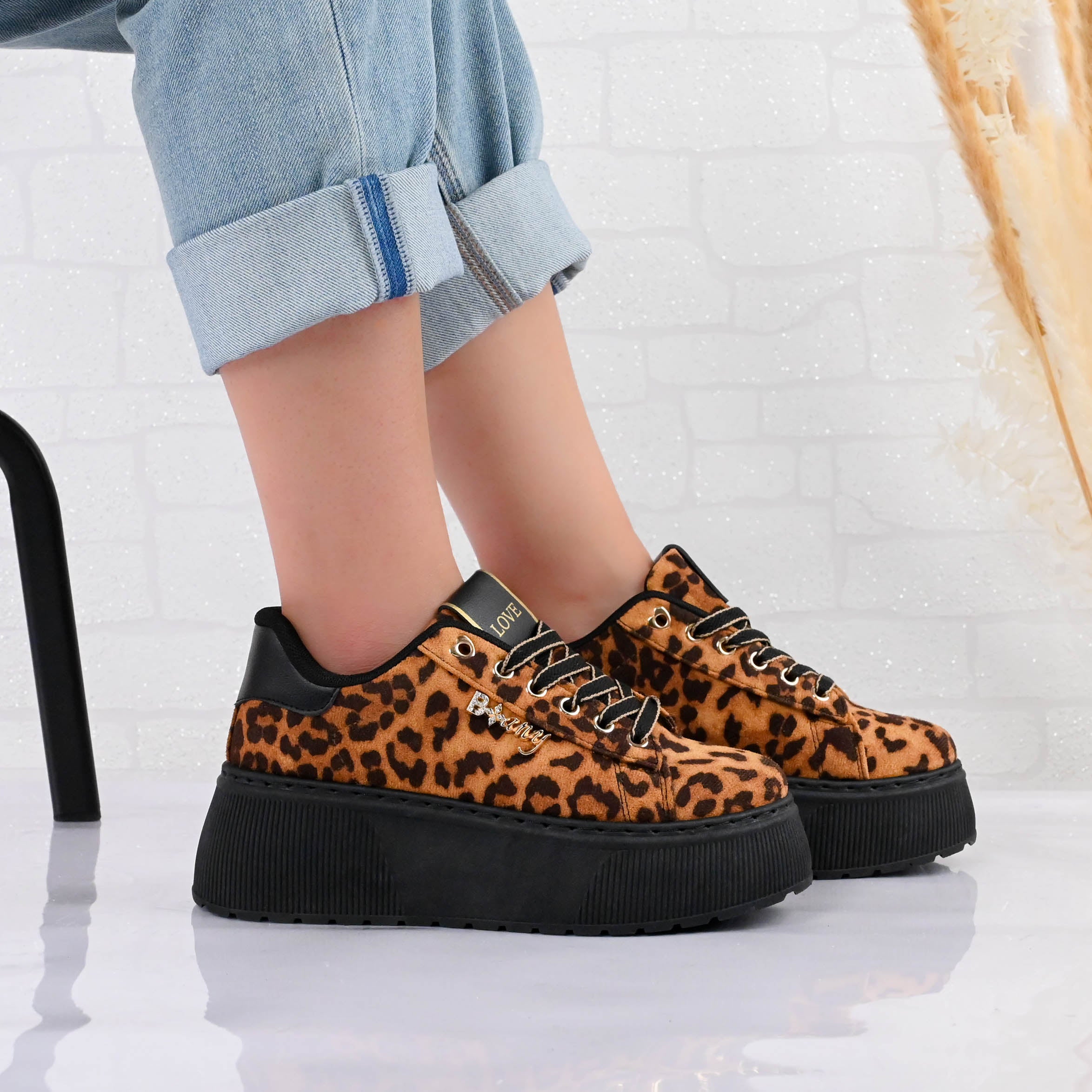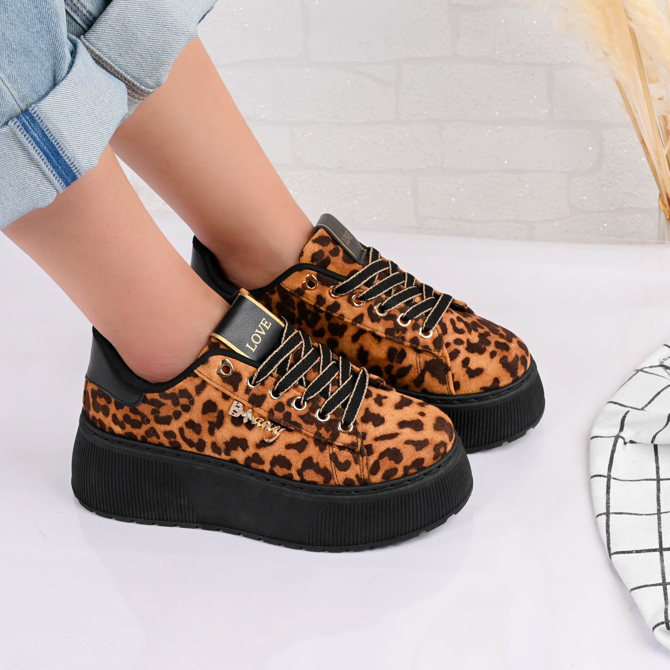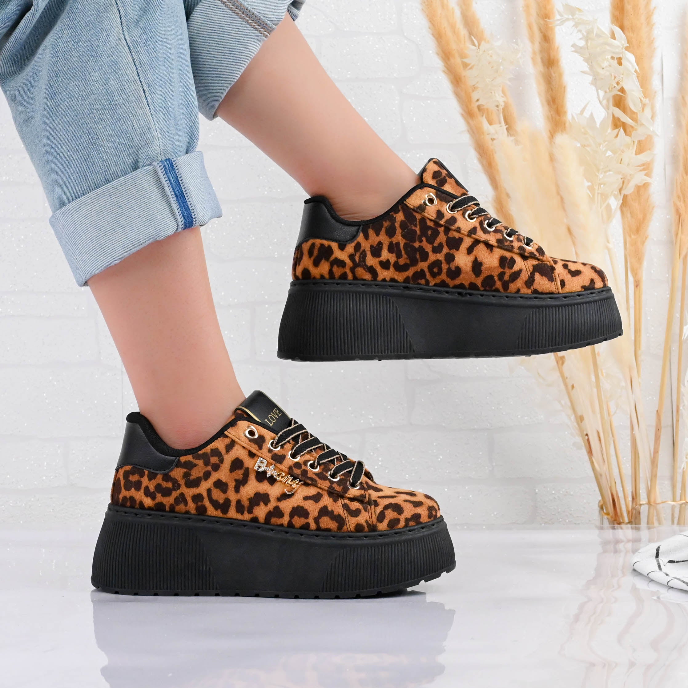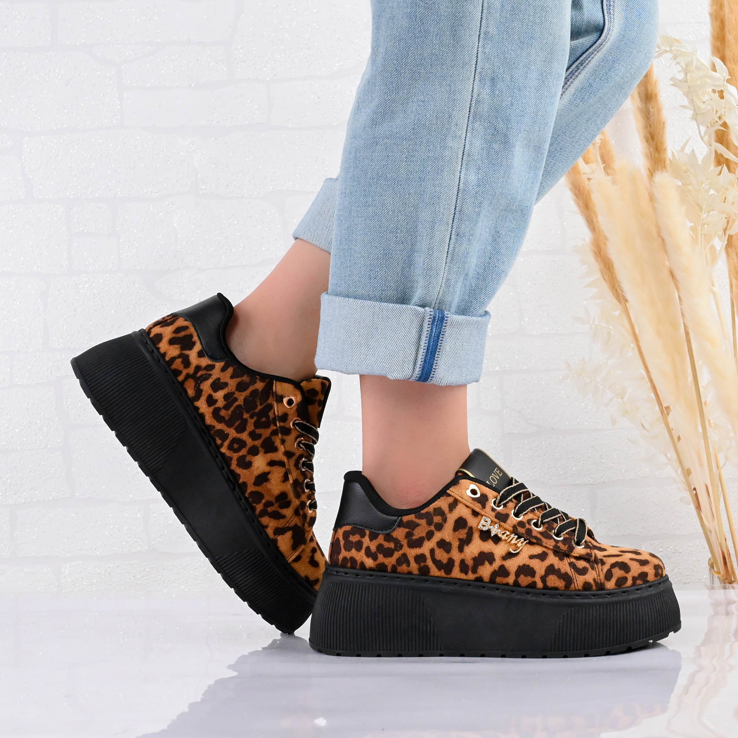 Pantofi Sport De Dama,Din Piele Ecologica,Cu Platforma,D1449,Leopard