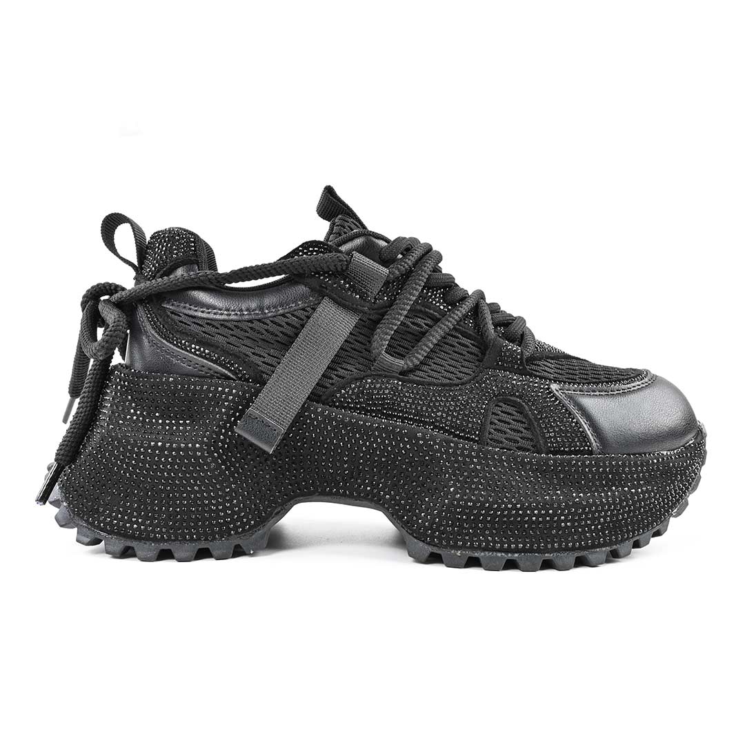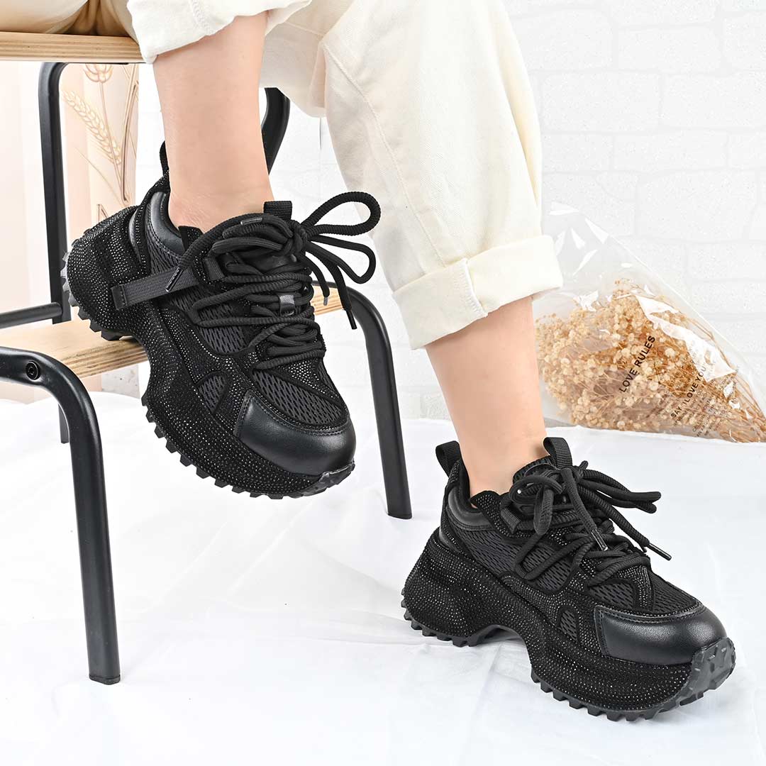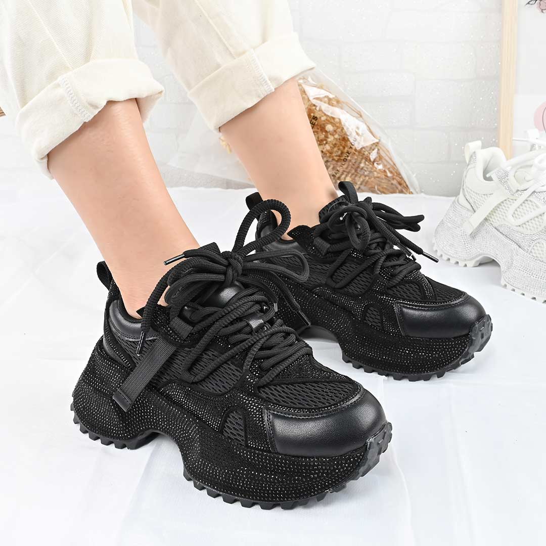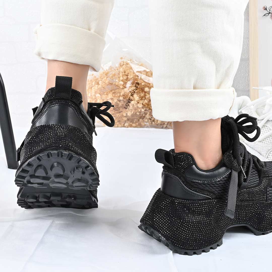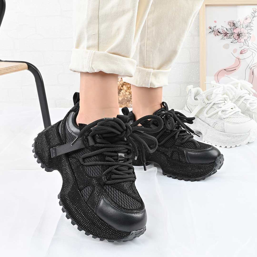 Pantofi Sport De Dama,Din Piele ecologica cu Strasui,D1462,Negru