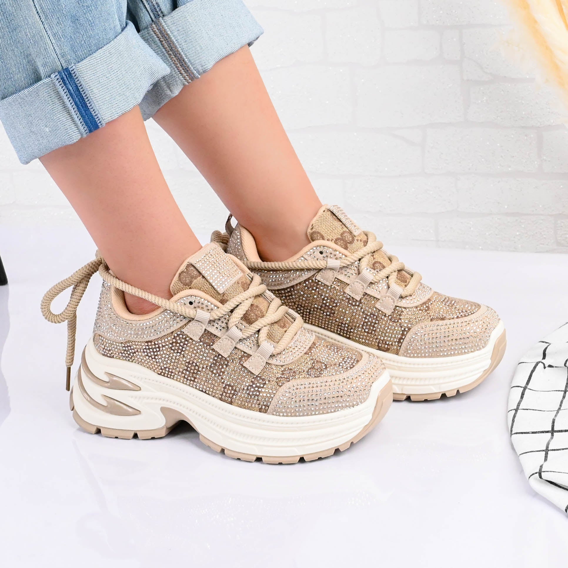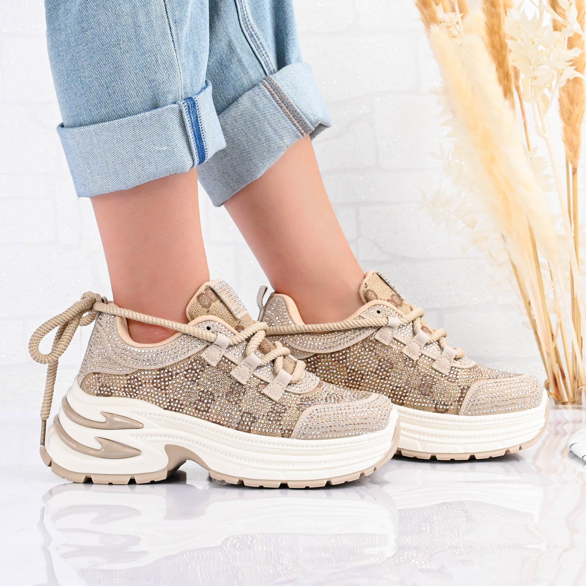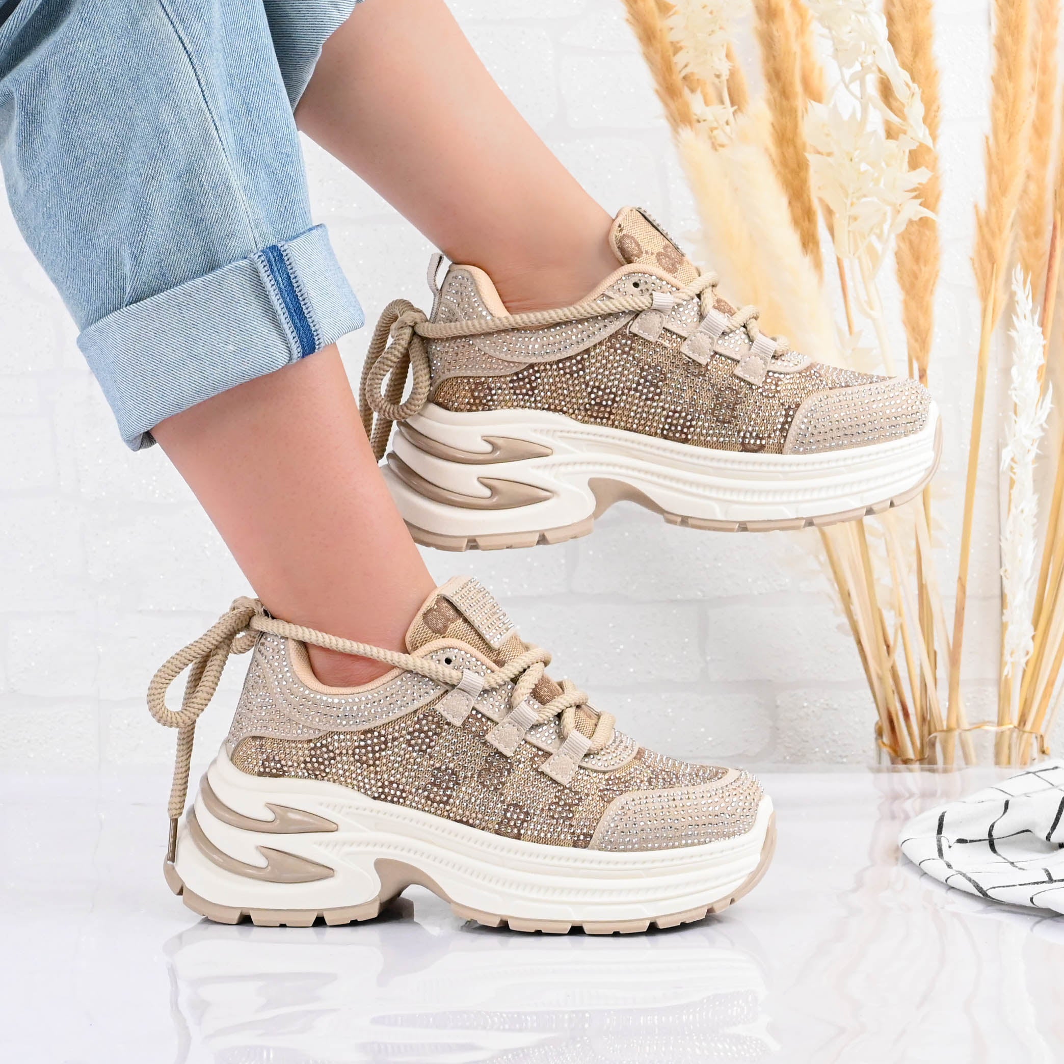 Pantofi Sport De Dama,Din Piele Ecologica,Cu Strasuri,D1446,Kaki