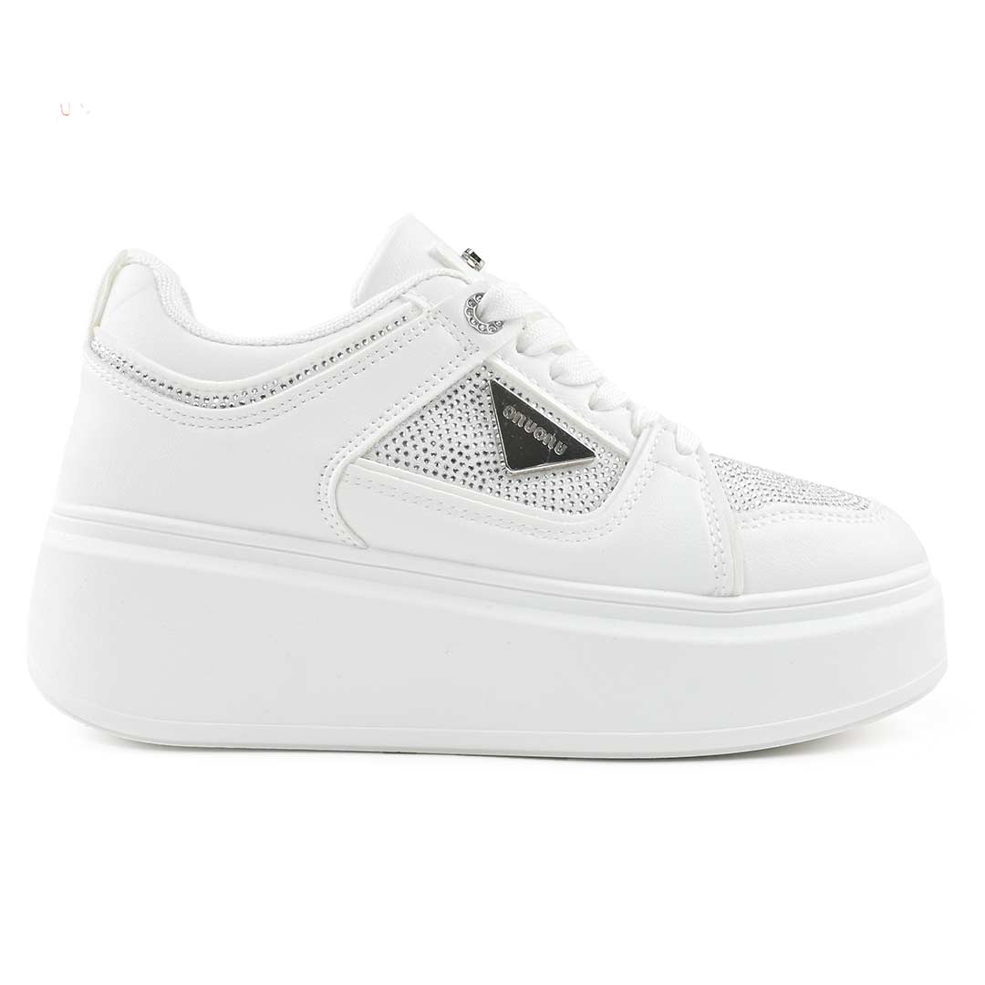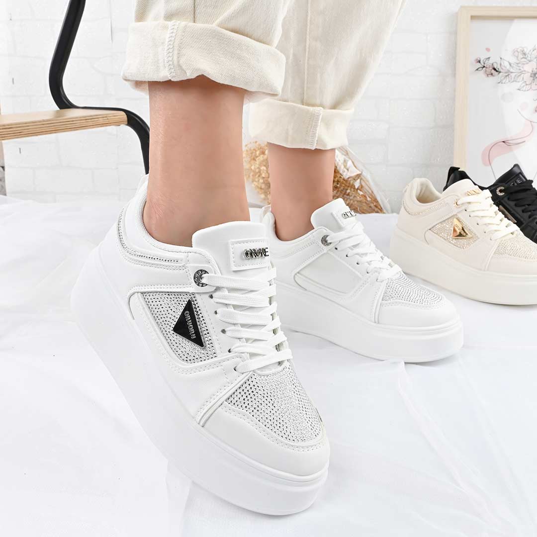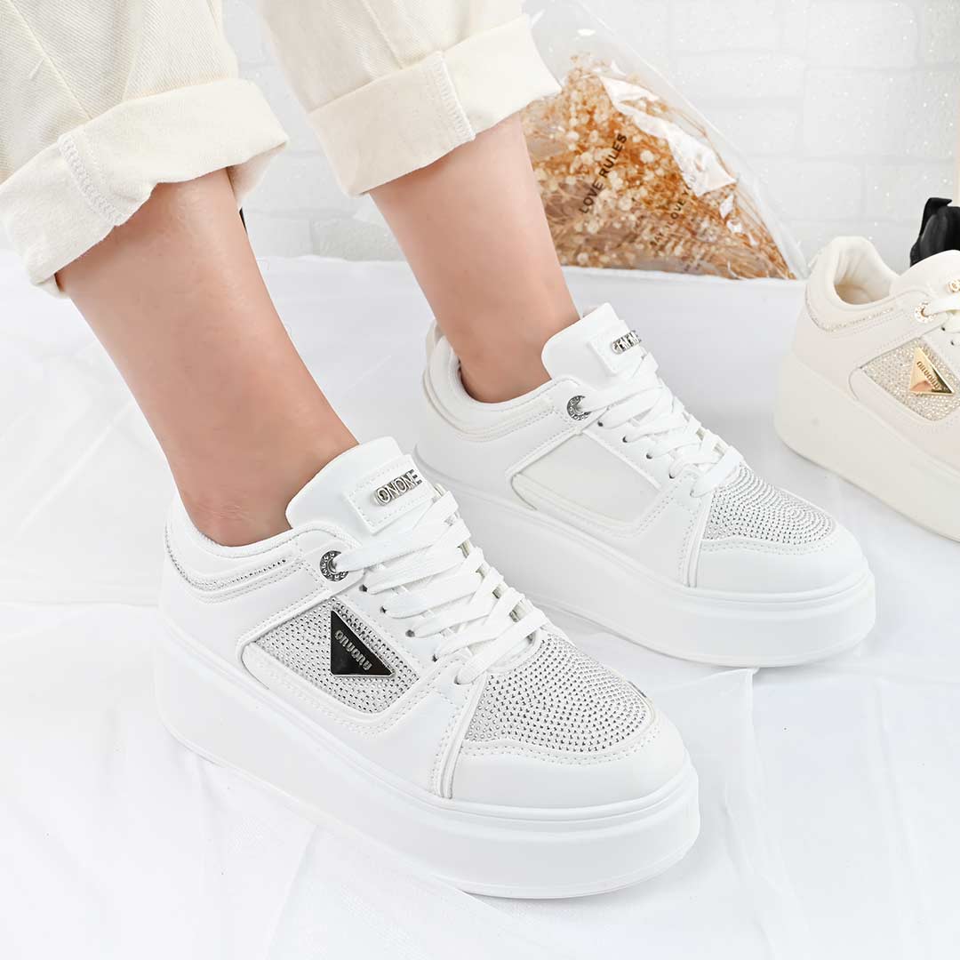 Pantofi Sport De Dama,Din Piele ecologica cu Strasuri,D1470,Alb