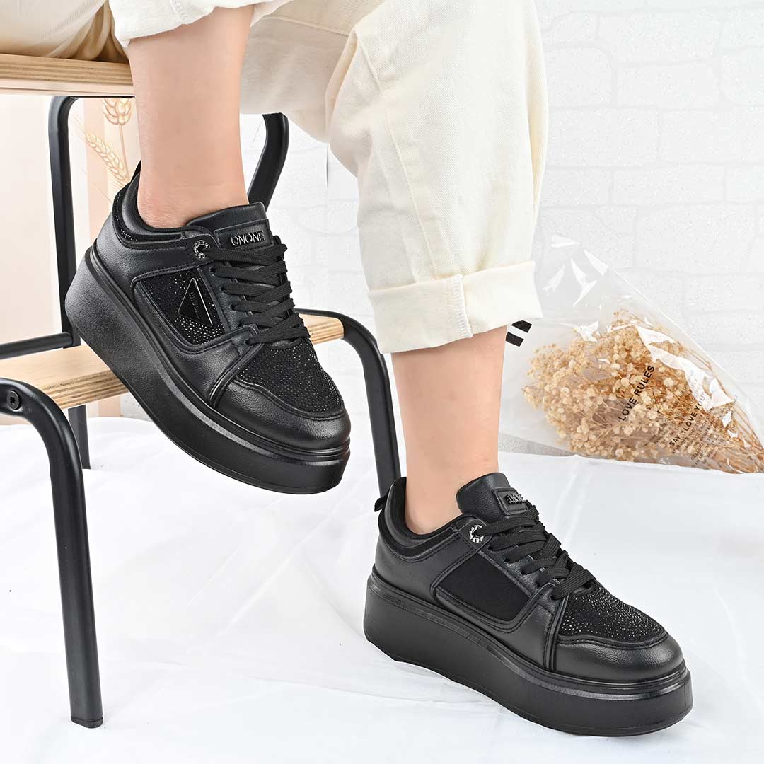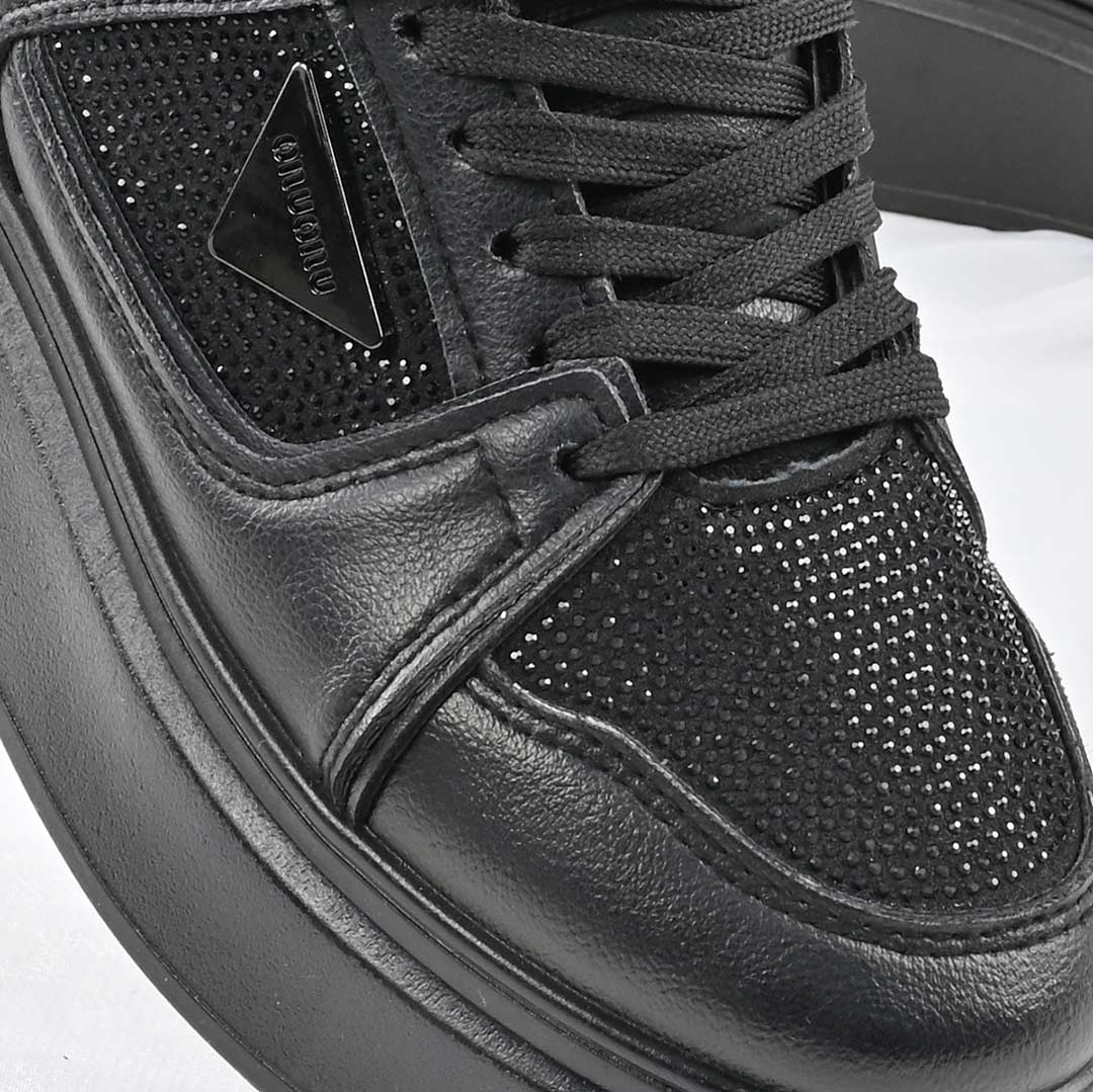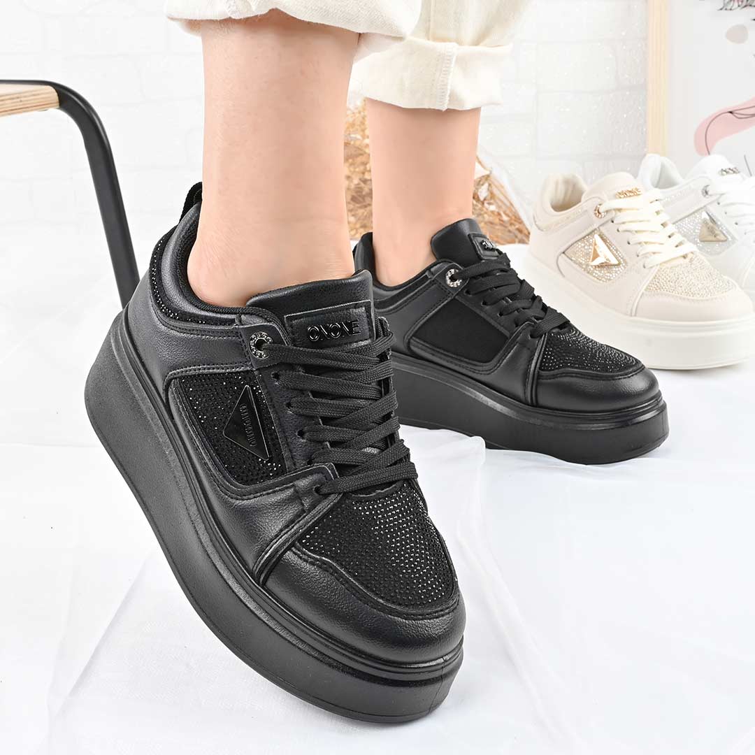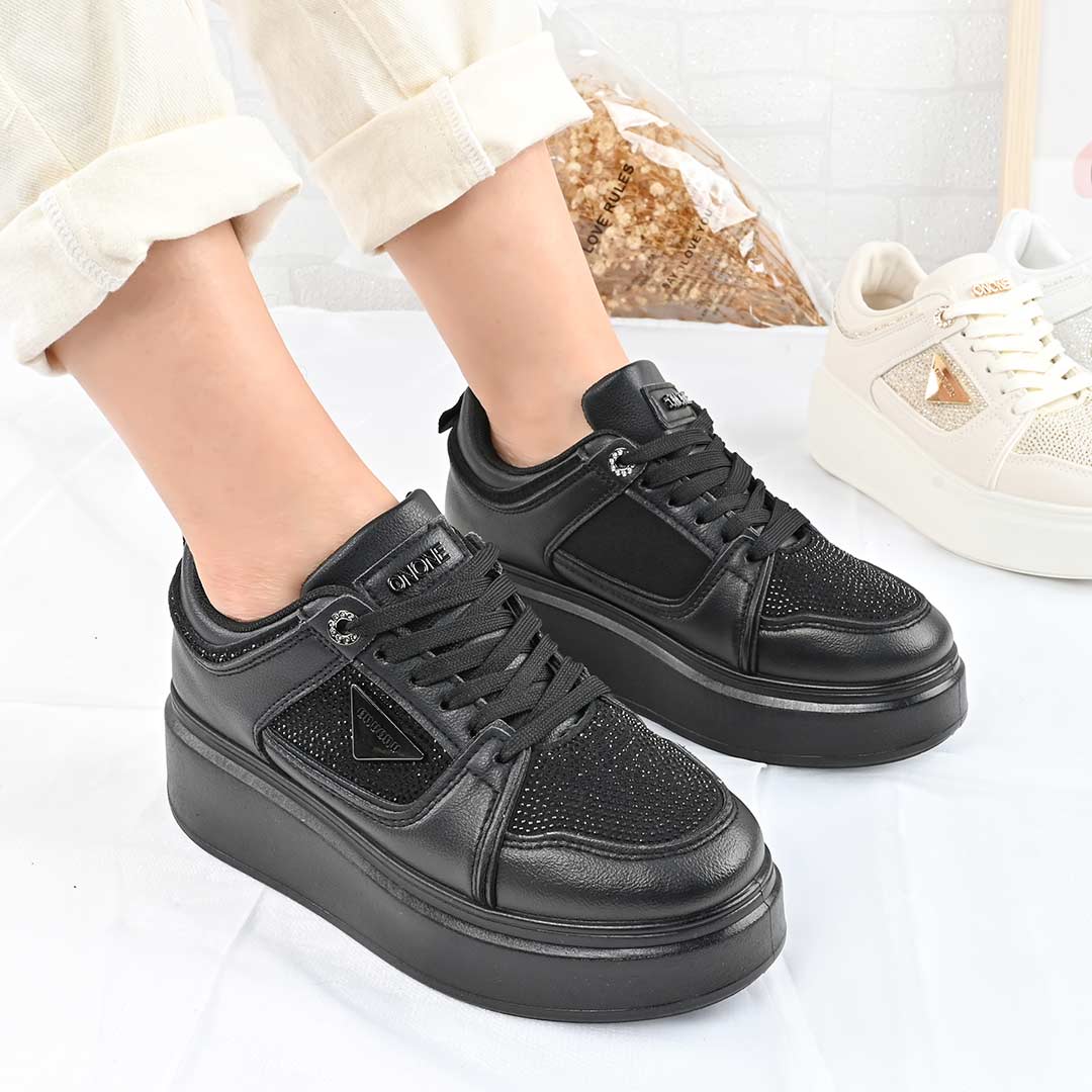 Pantofi Sport De Dama,Din Piele ecologica cu Strasuri,D1470,Negru