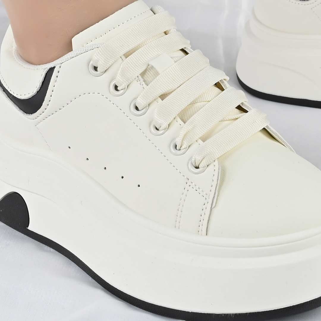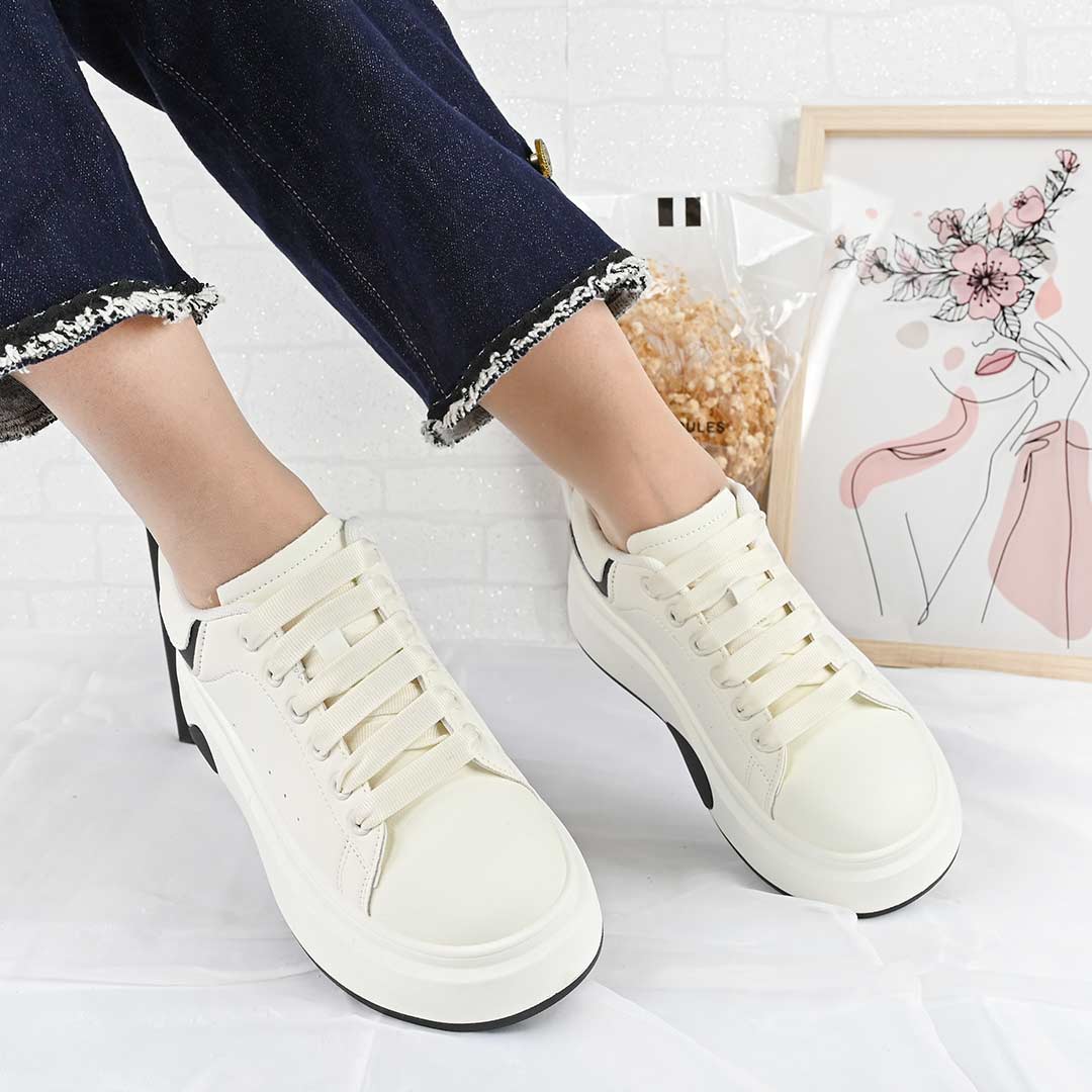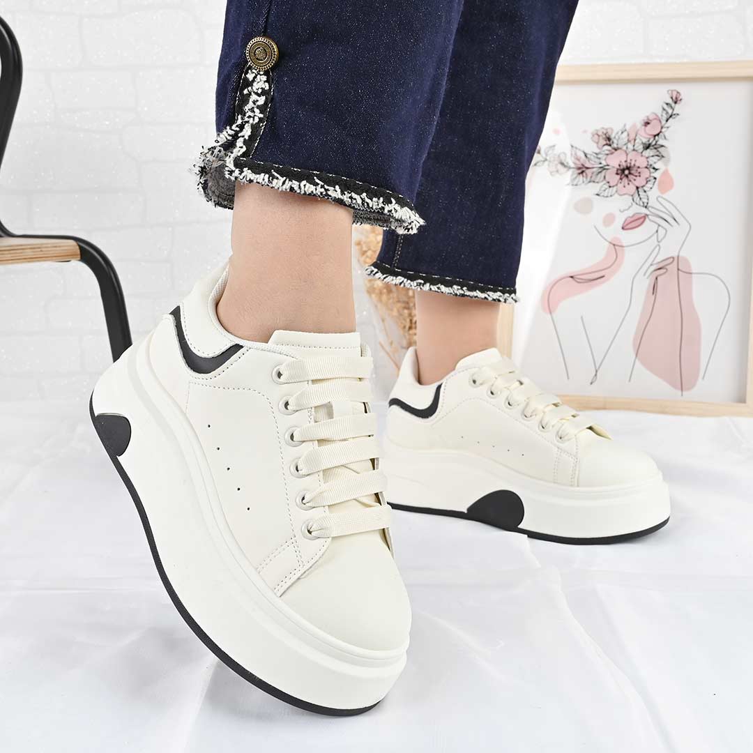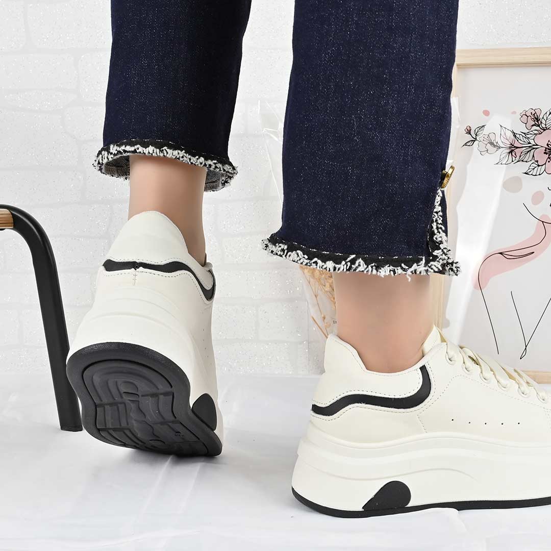 Pantofi Sport De Dama,Din Piele ecologica,D1489,Alb cu Negru