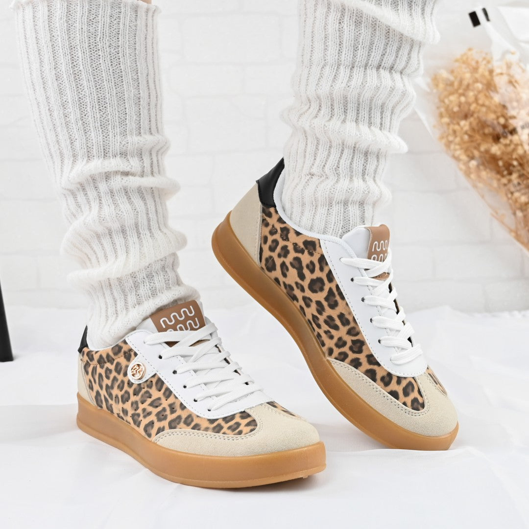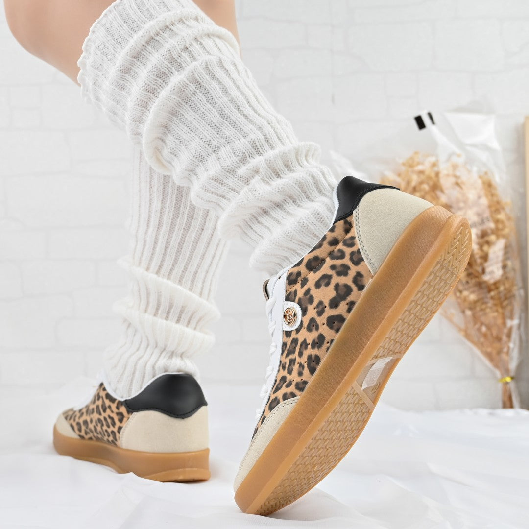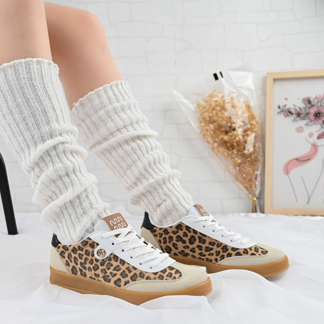 Îmbină confortul cu stilul contemporan cu acești pantofi sport pentru femei, confecționați din piele ecologică întoarsă în imprimeu leopard. Ideali...