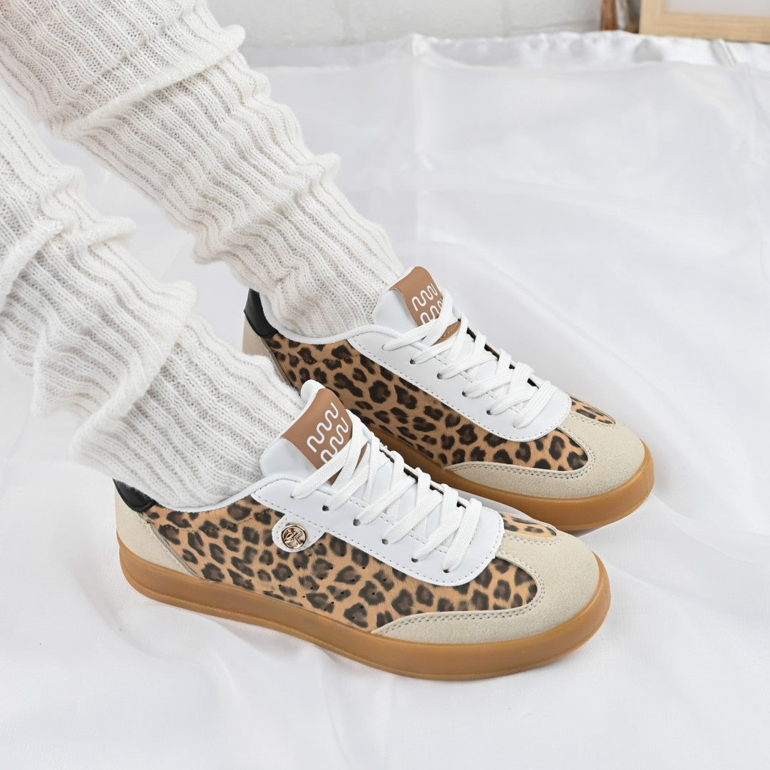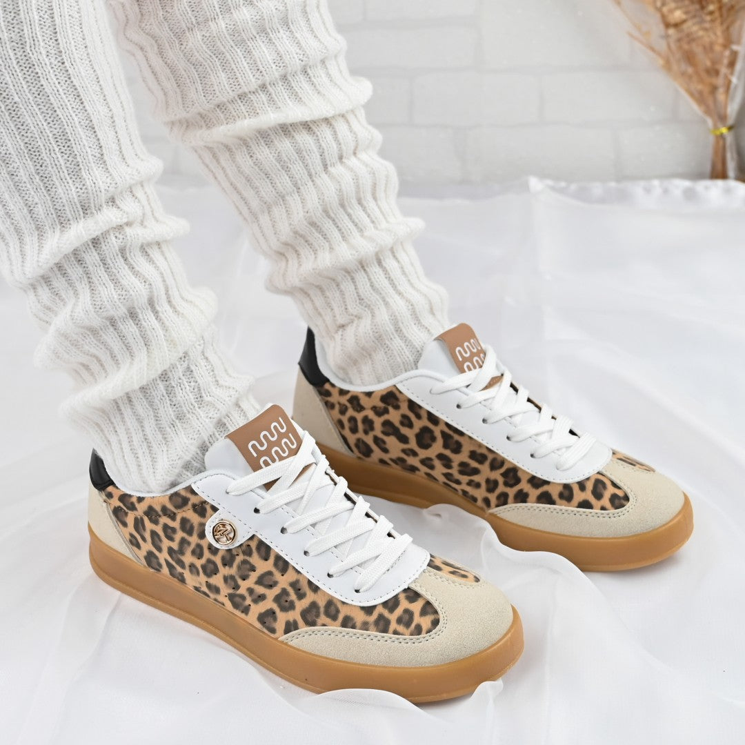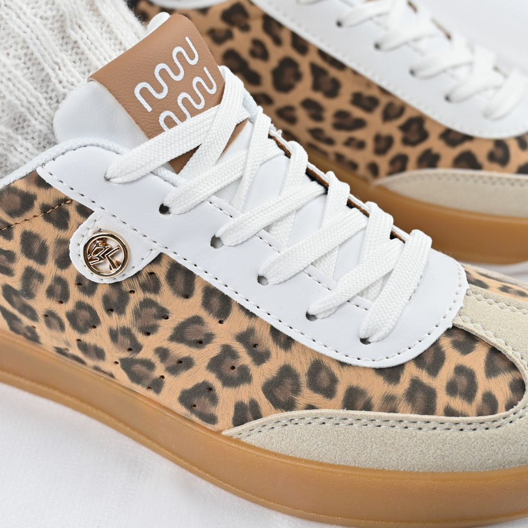 Îmbină confortul cu stilul contemporan cu acești pantofi sport pentru femei, confecționați din piele ecologică întoarsă în imprimeu leopard. Ideali...