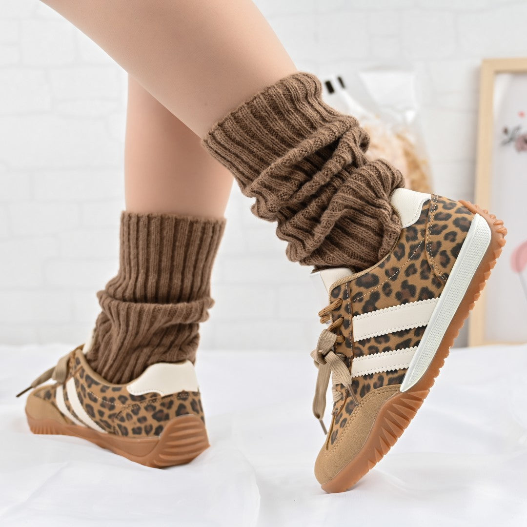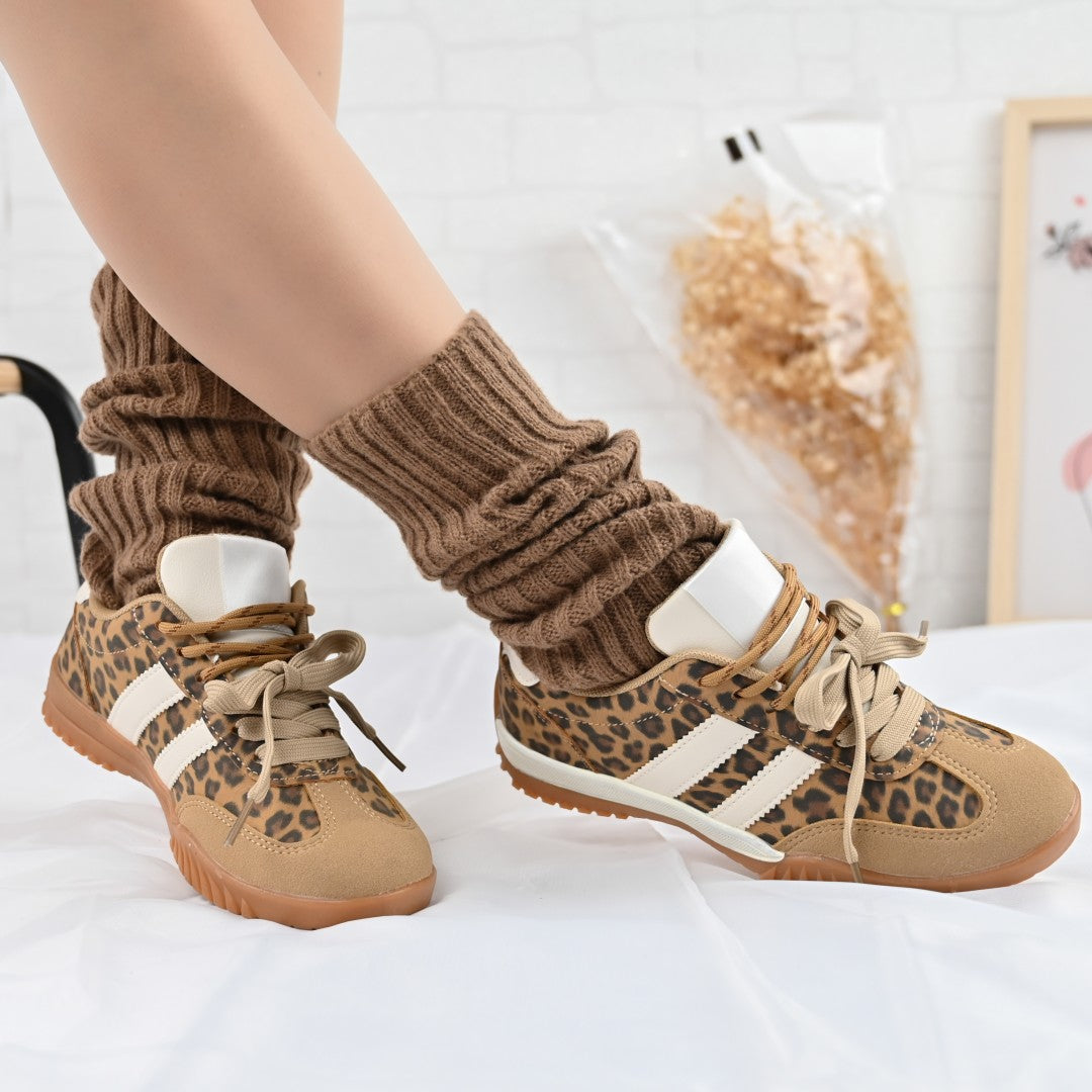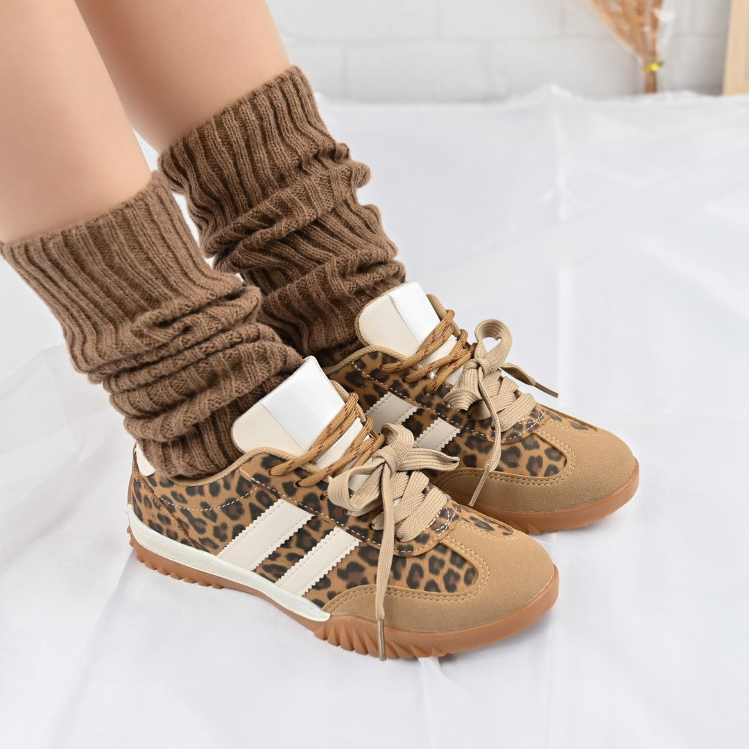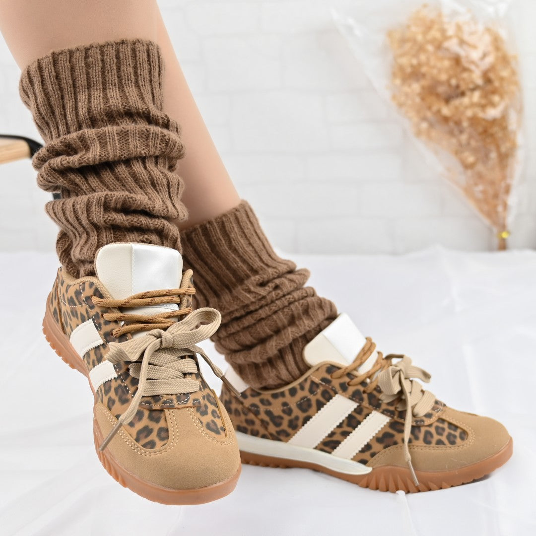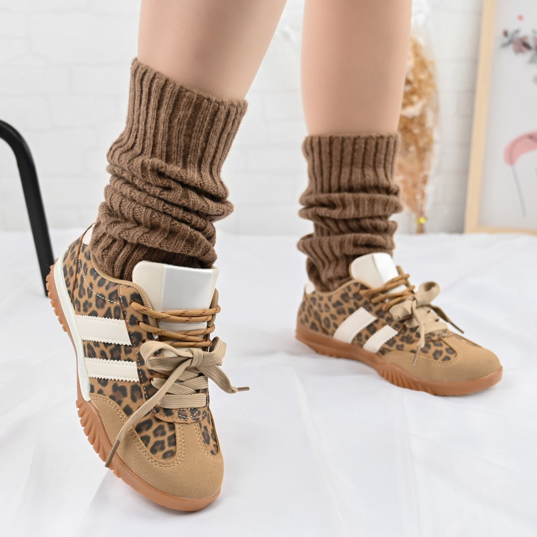 Descoperiți confortul și stilul cu pantofii sport pentru femei din piele ecologică întoarsă, model D1411, cu un design leopard atrăgător....