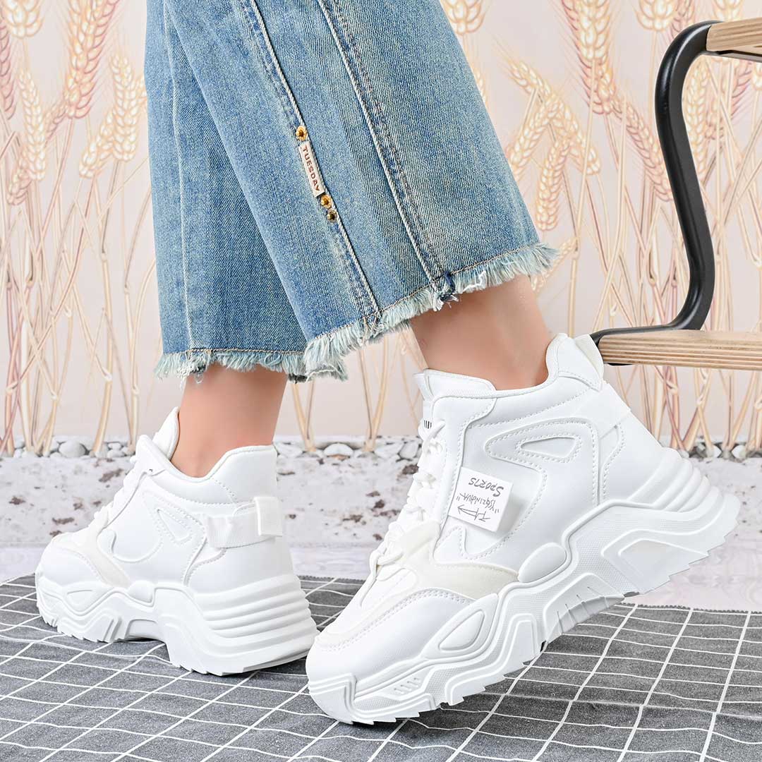 Pantofi sport inalti de dama , Cu platforma, Piele ecologica ,1288,Alb,