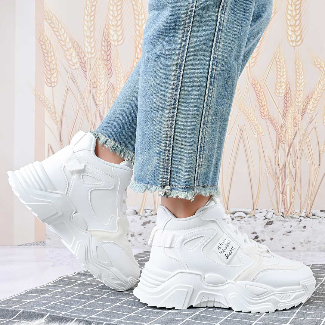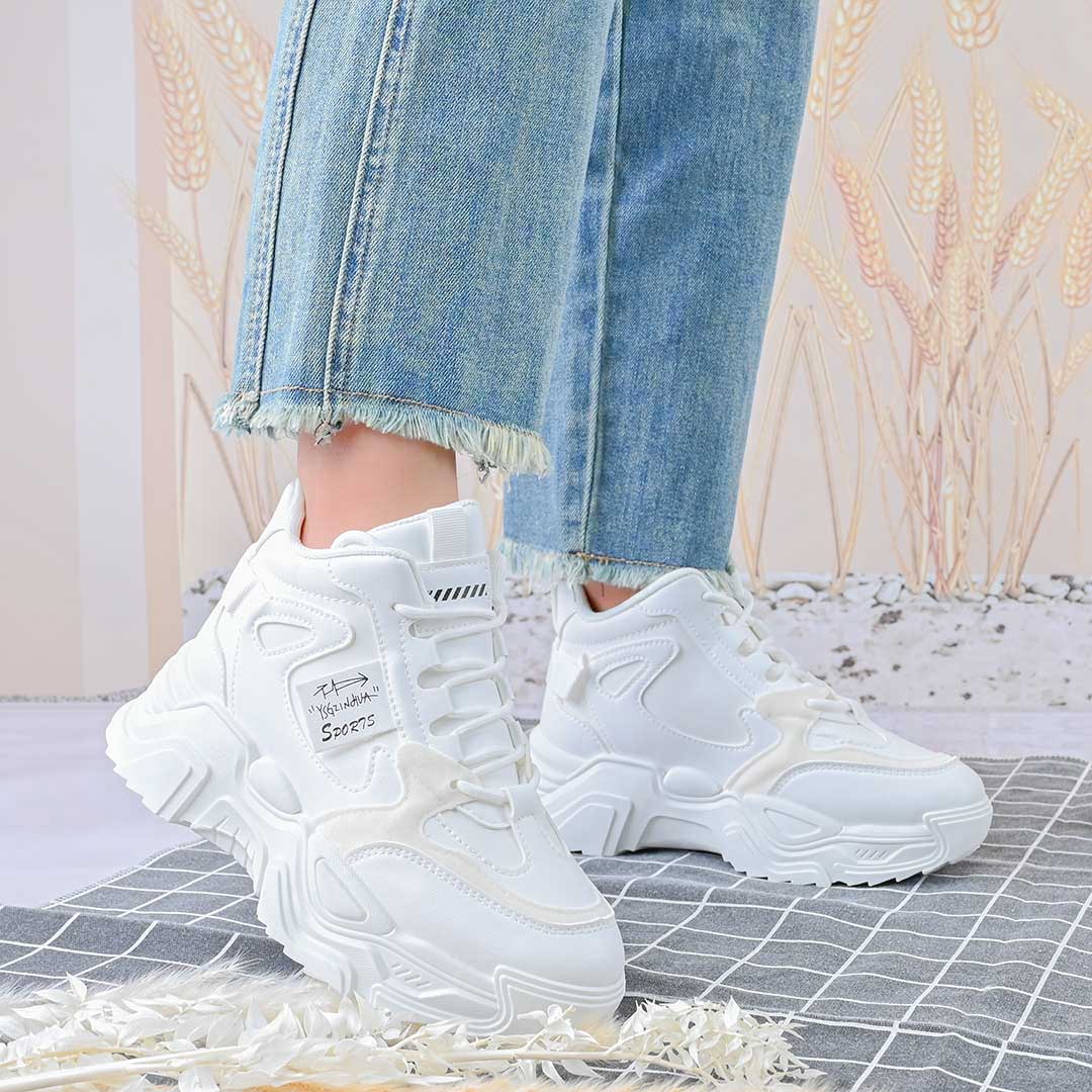 Descoperiți confortul și stilul cu pantofii sport înalți pentru femei, din piele ecologică albă. Ideal pentru primăvară și toamnă, cu...