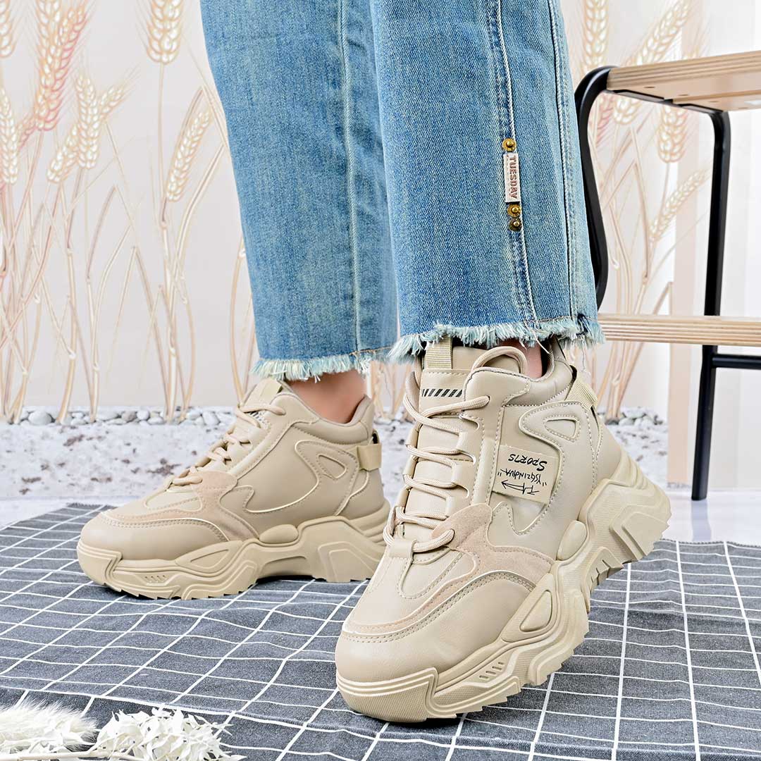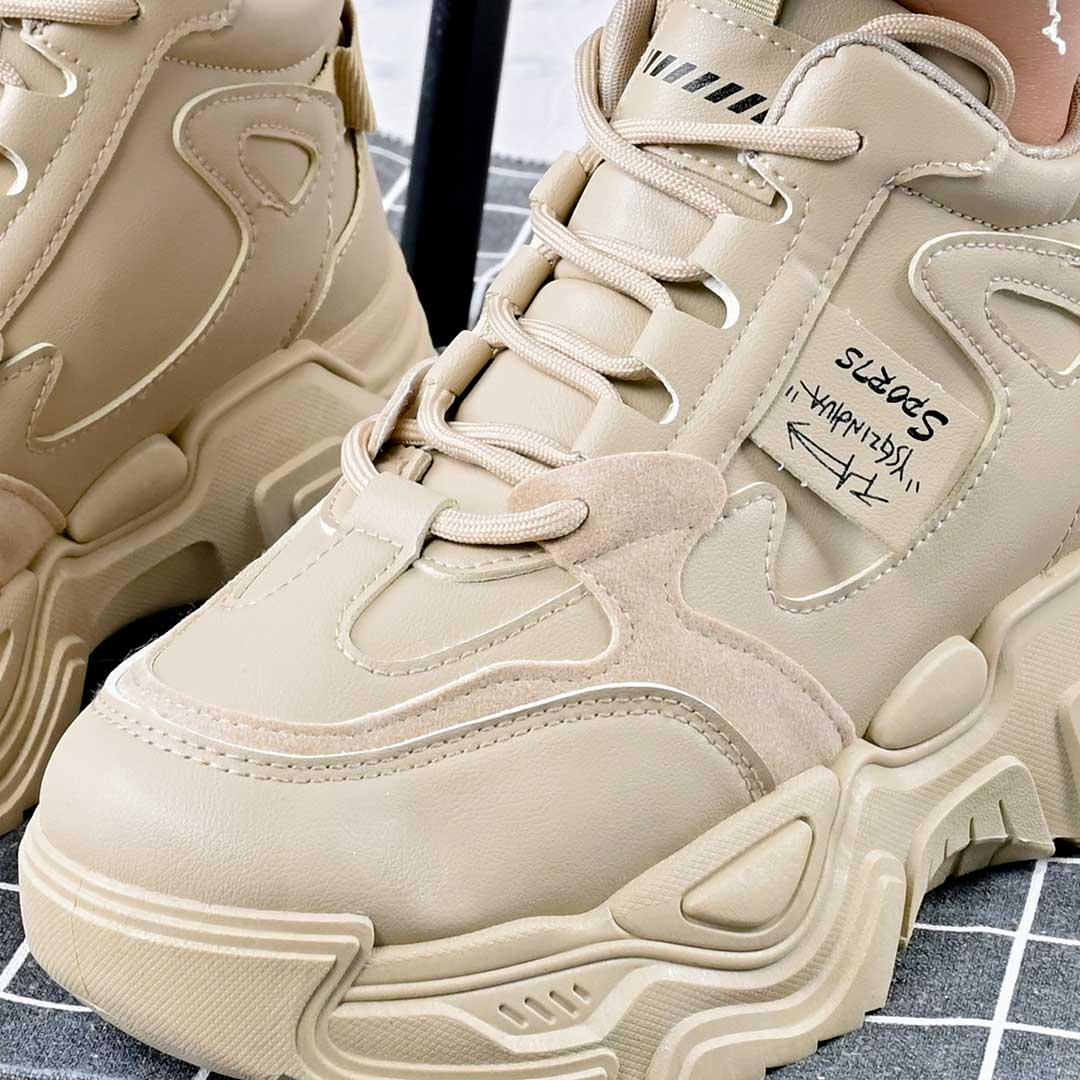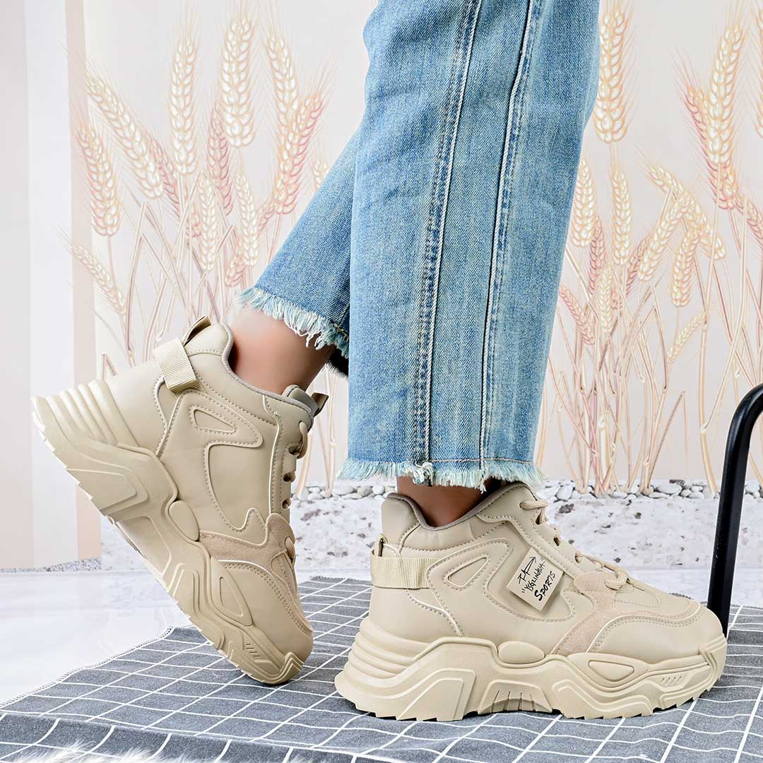 Pantofi sport inalti de dama , Cu platforma, Piele ecologica ,1288,Kaki,