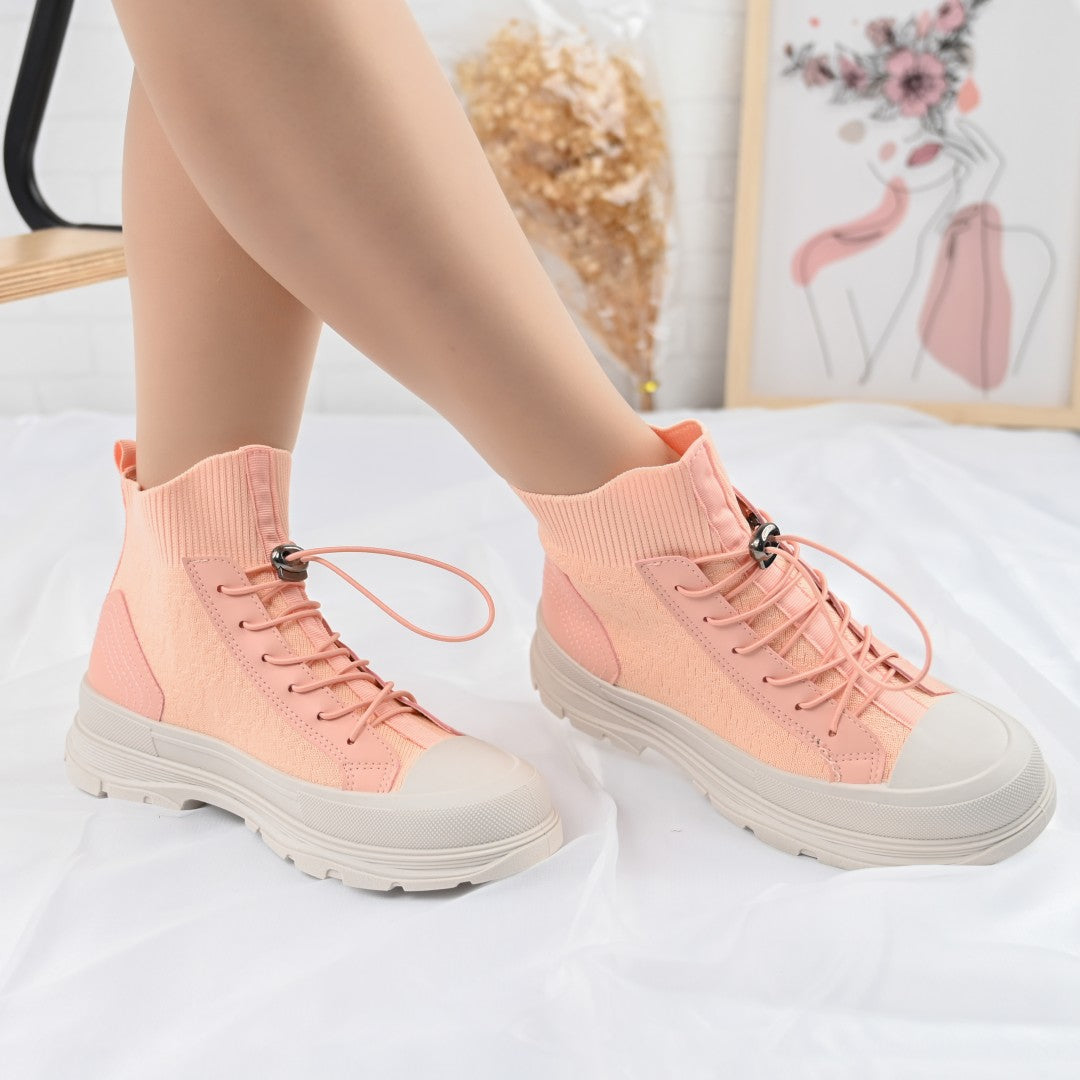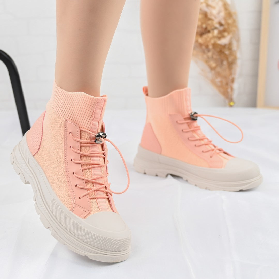 Descoperiți confortul și stilul cu pantofii sport înalți de dama, din material textil roz. Ideali pentru primăvară-toamnă, cu talpă de...