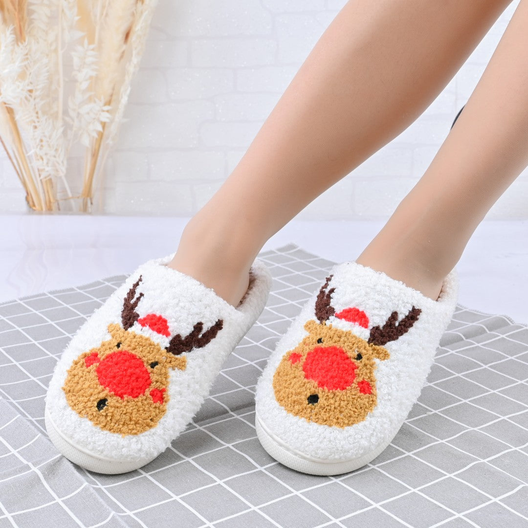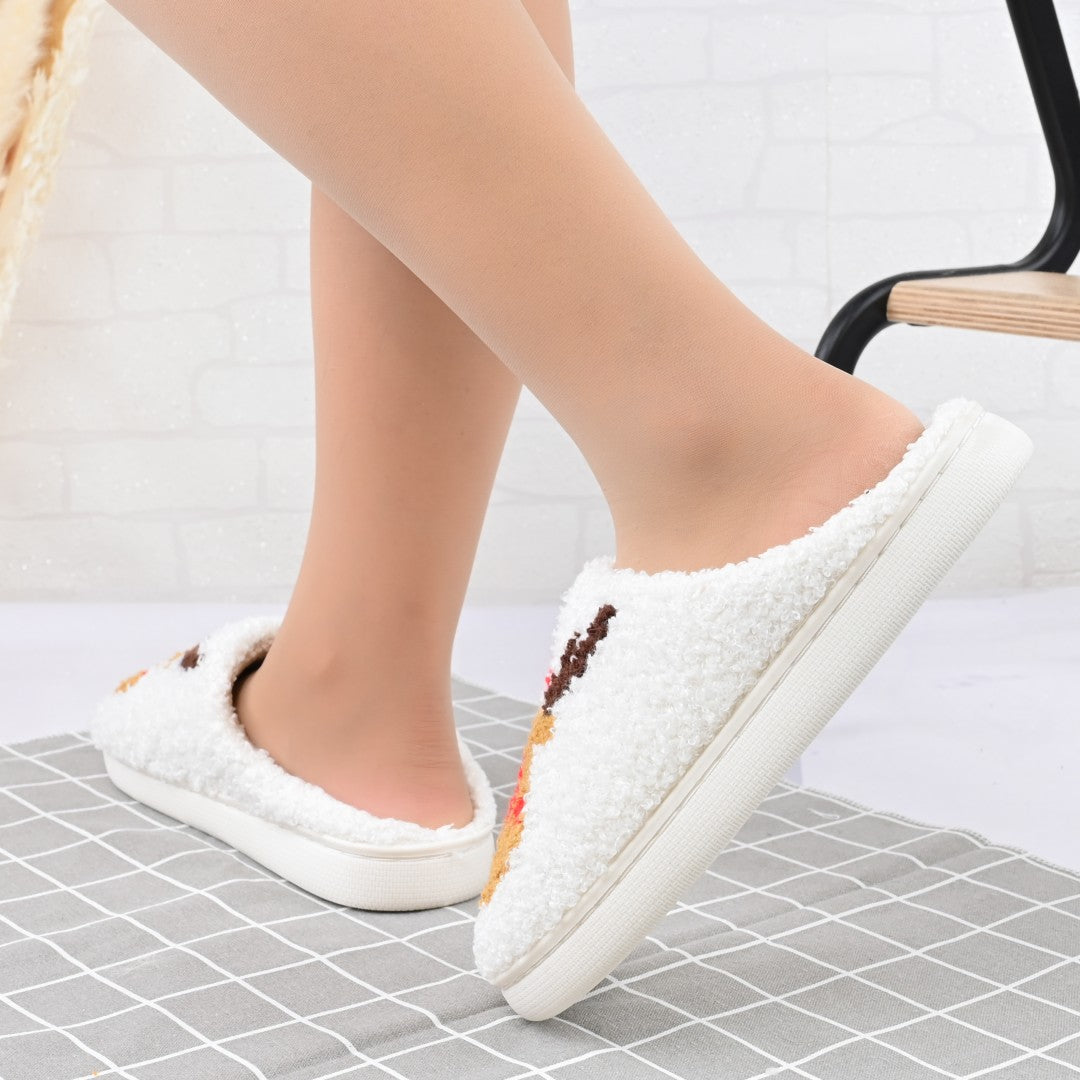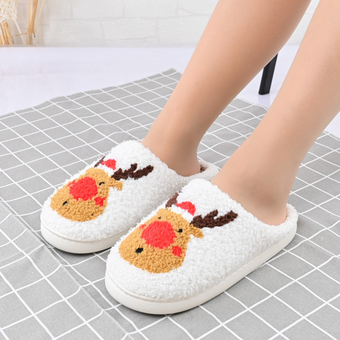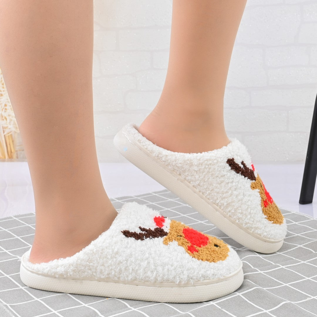 Papucii de casă pentru femei, din bumbac, cu design cu reni, confortabili și călduroși, îmblăniți la interior. Ideali pentru sezonul...