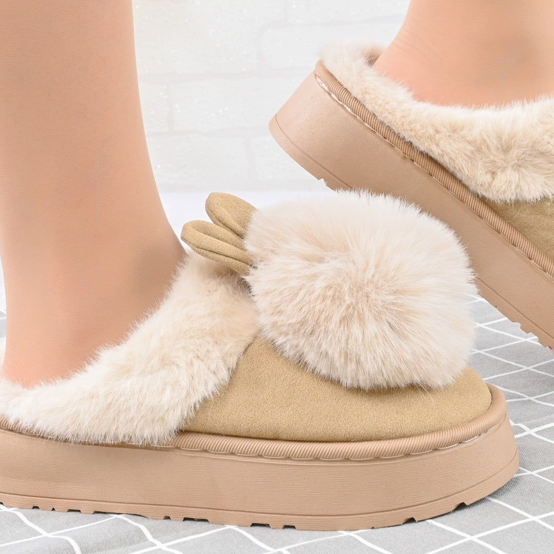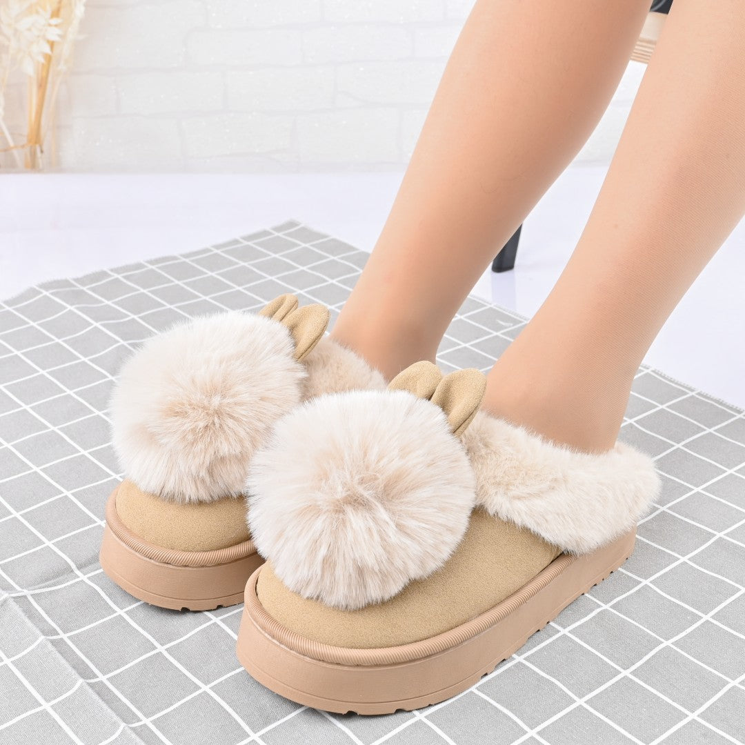 Papucii de casă pentru femei Iepure cu pompon sunt confectionați din blană artificială, imblaniți interior, oferind confort și căldură. Designul...