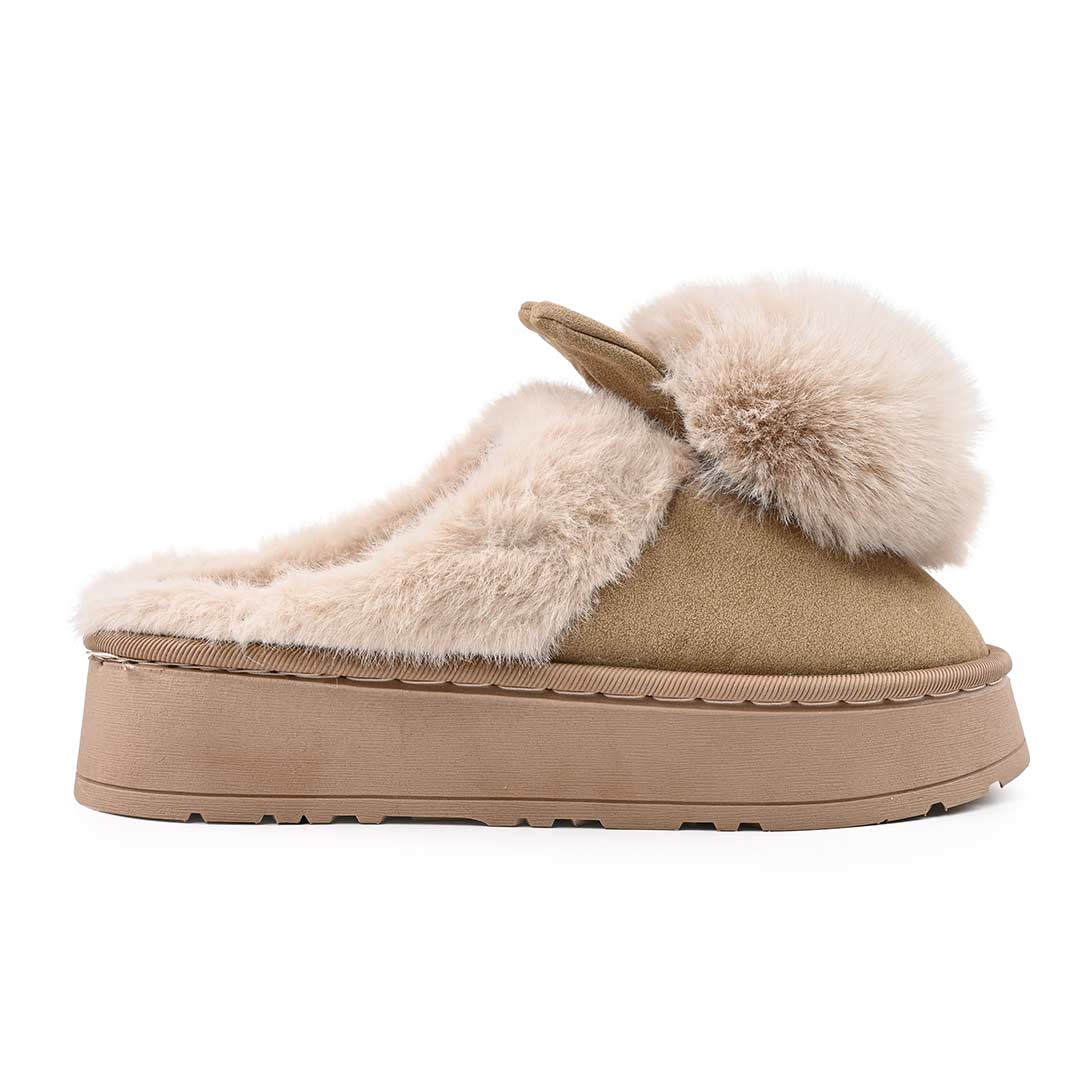Papuci de casa Dama,Iepure cu pompon, Imblaniti,PD1057,Bej