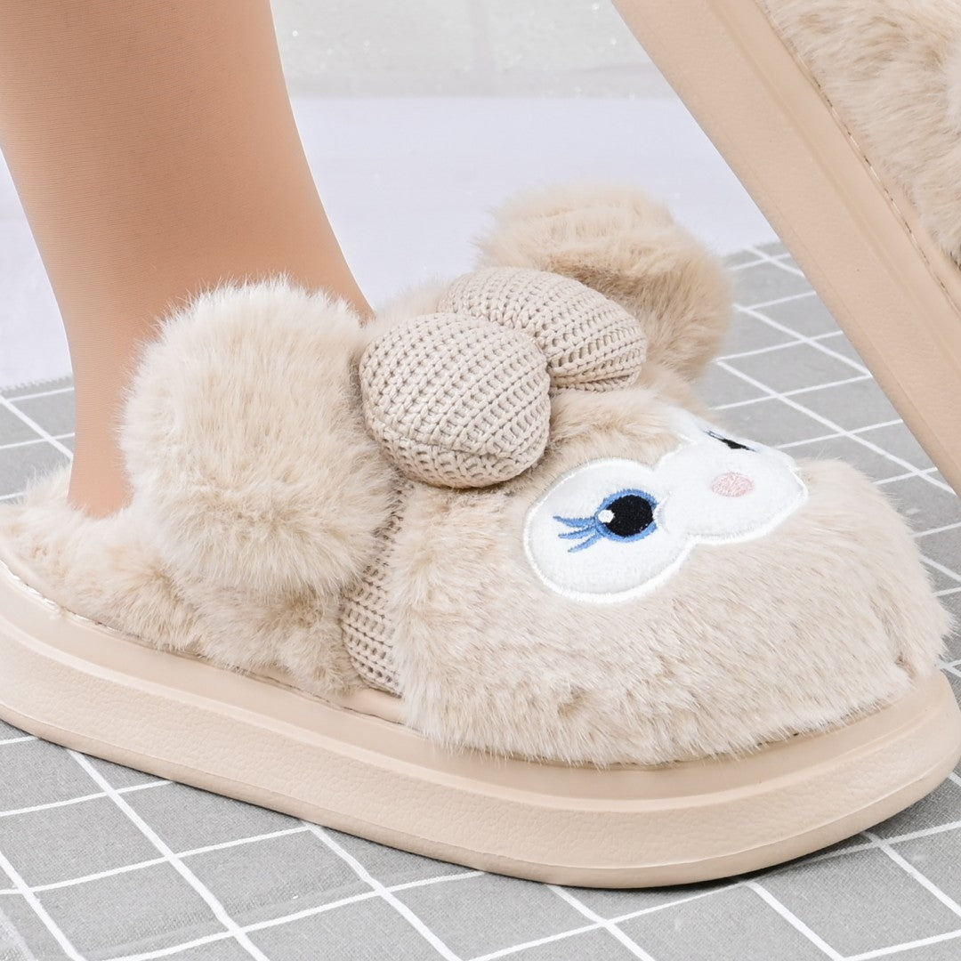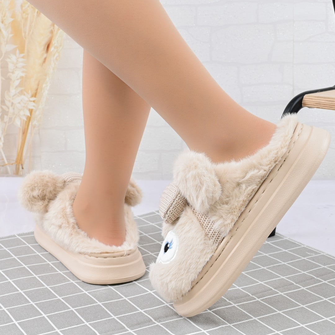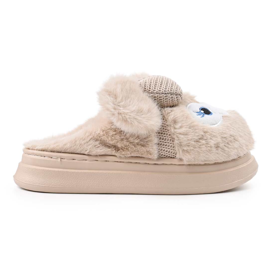 Papuci de casa Dama, pufosi,cu papion, Imblaniti,PD1058,Bej