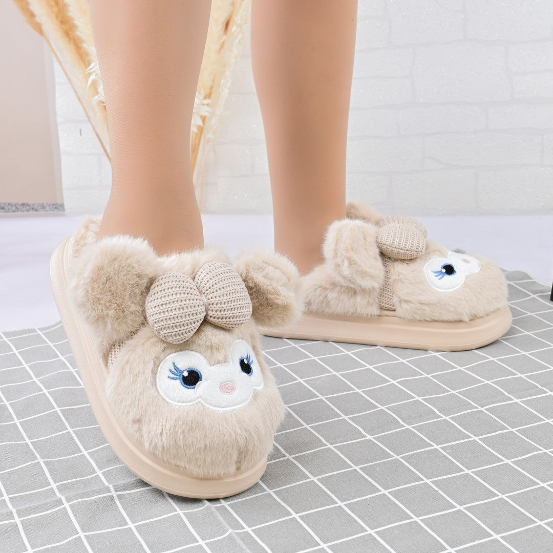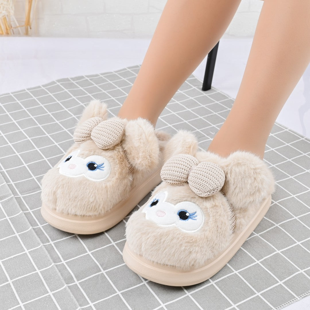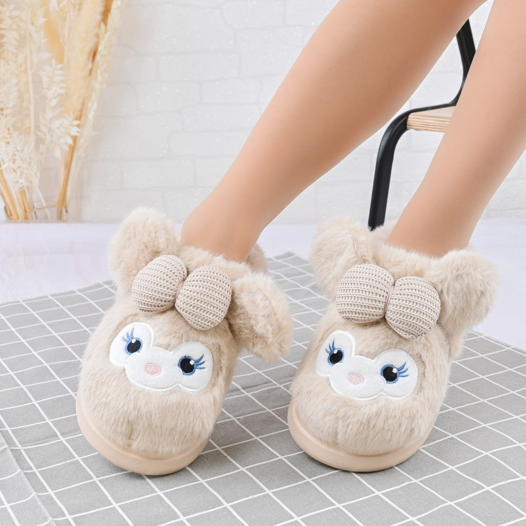 Papuci de casa Dama, pufosi,cu papion, Imblaniti,PD1058,Bej