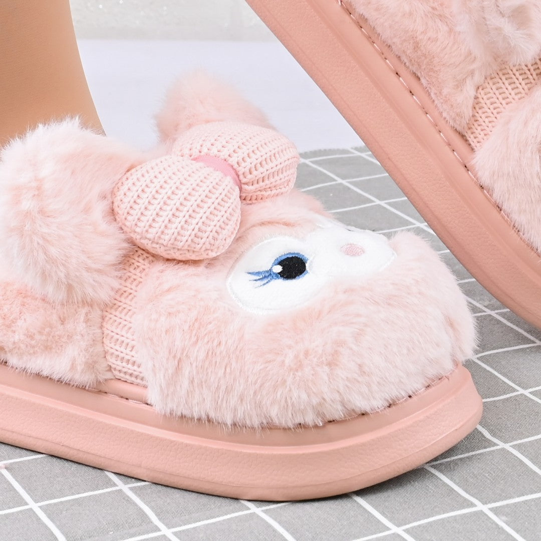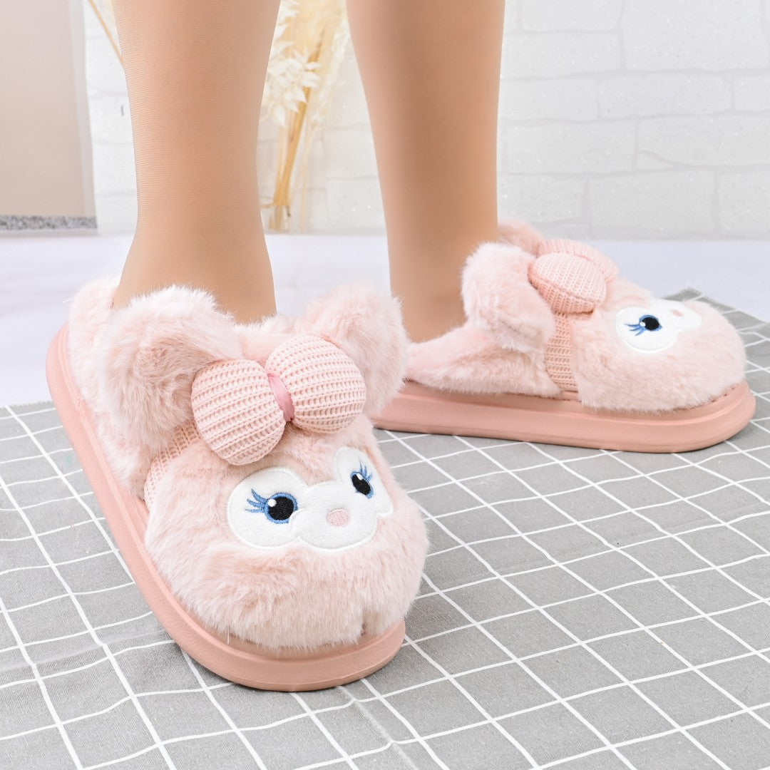 Papucii de casă pentru dame, model PD1058, sunt comozi și eleganți, având un design cu papion. Construiți din blană artificială,...