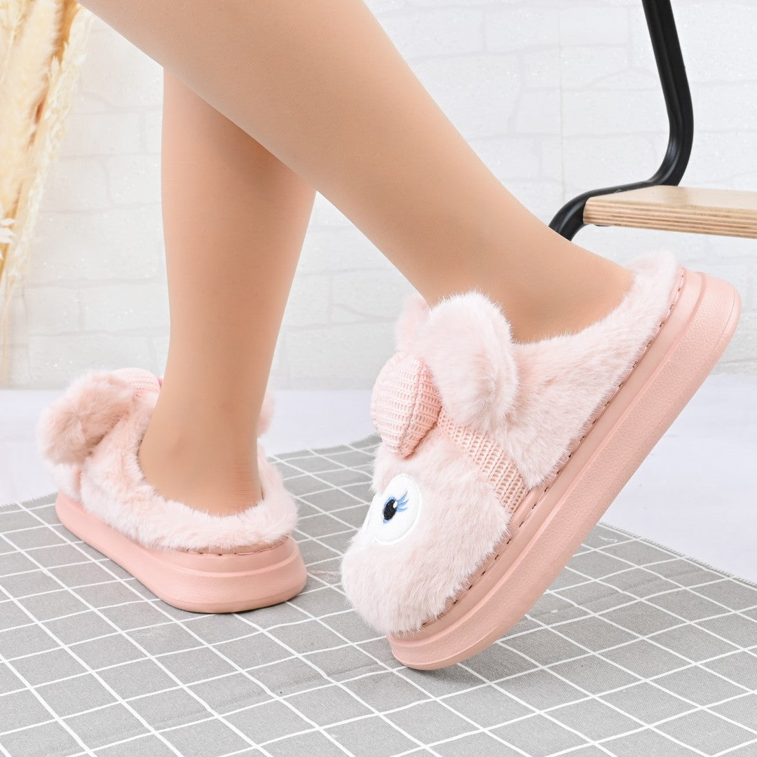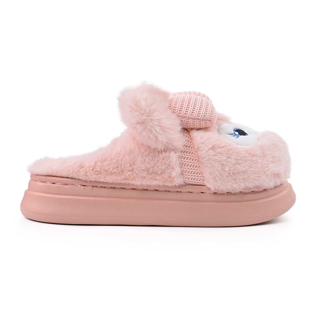 Papuci de casa Dama, pufosi,cu papion, Imblaniti,PD1058,Roz