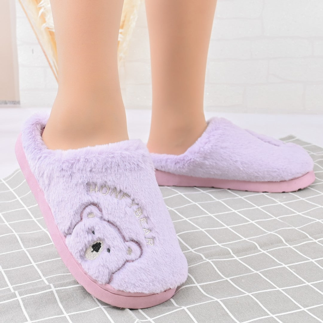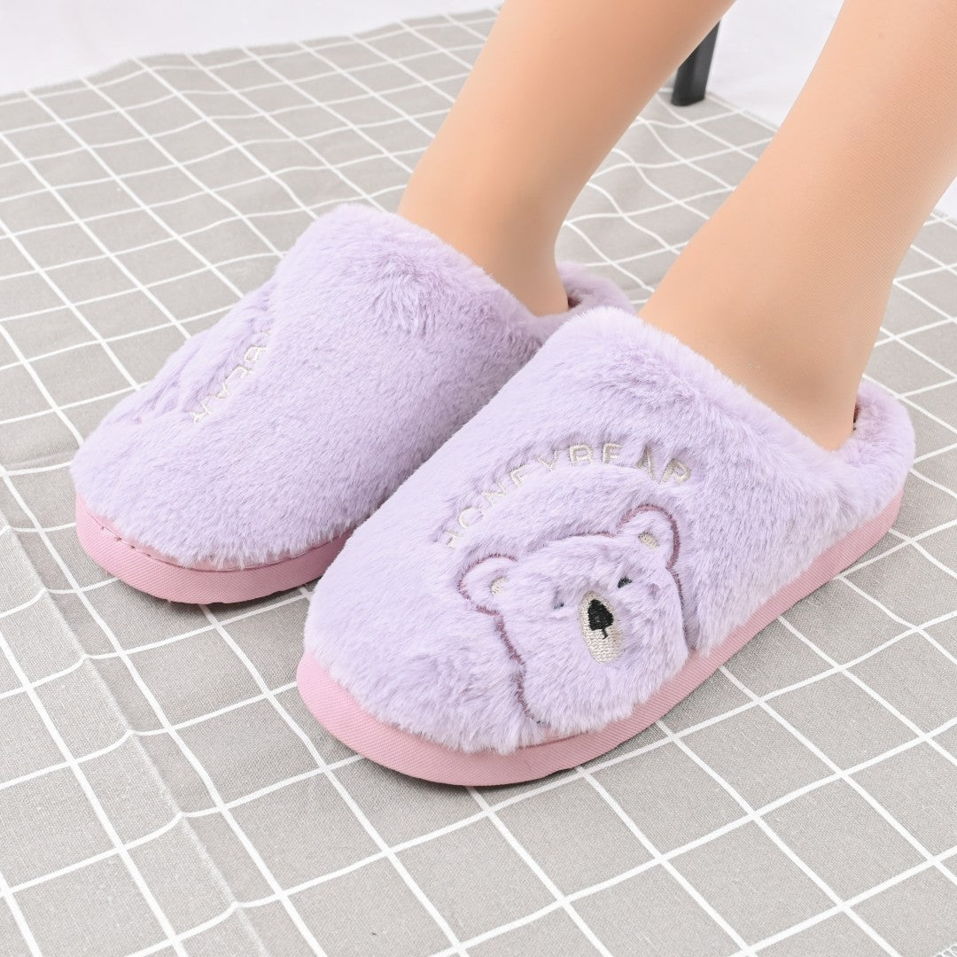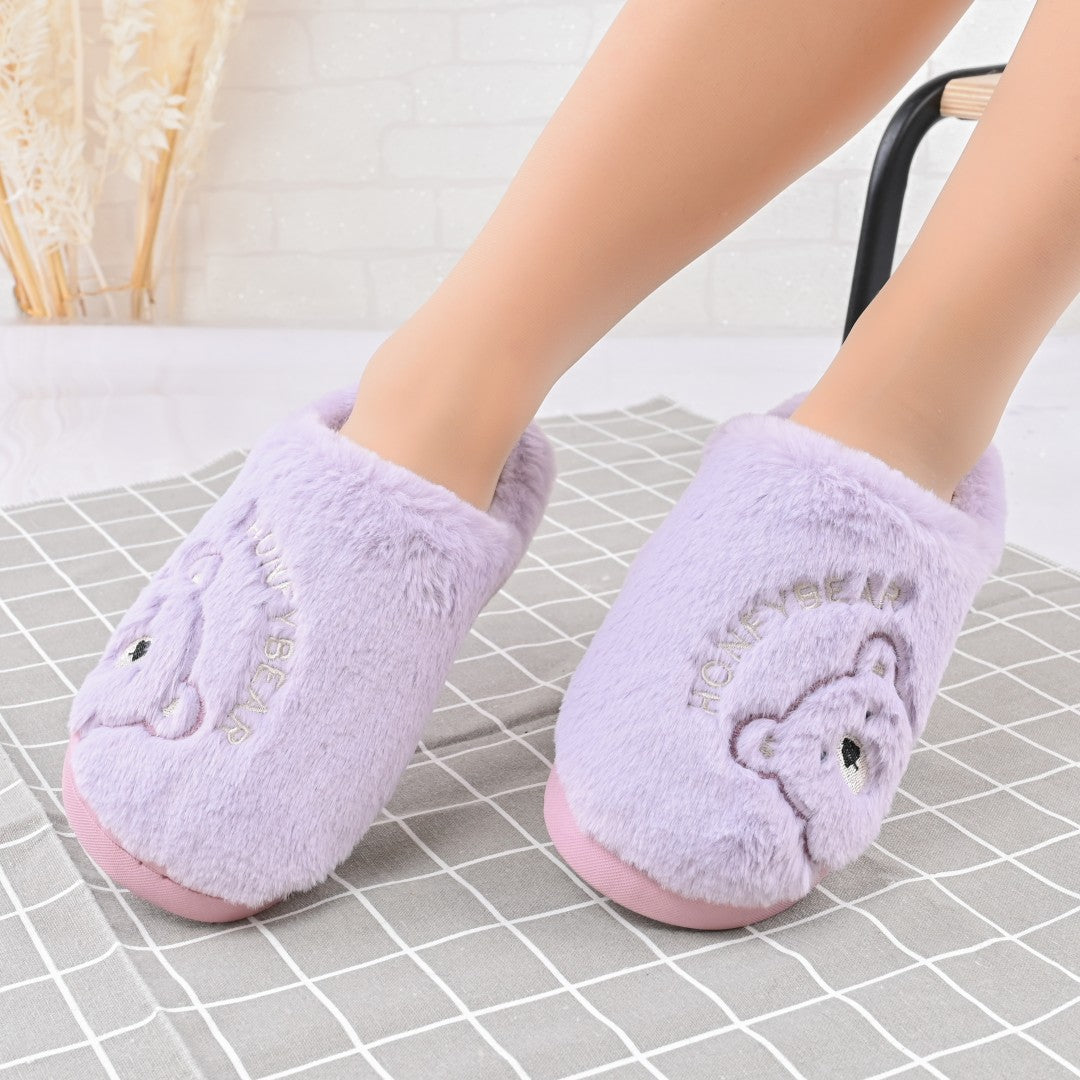 Papuci de casa Dama, pufosi,cu Ursulet, Imblaniti,PD1066,Mov