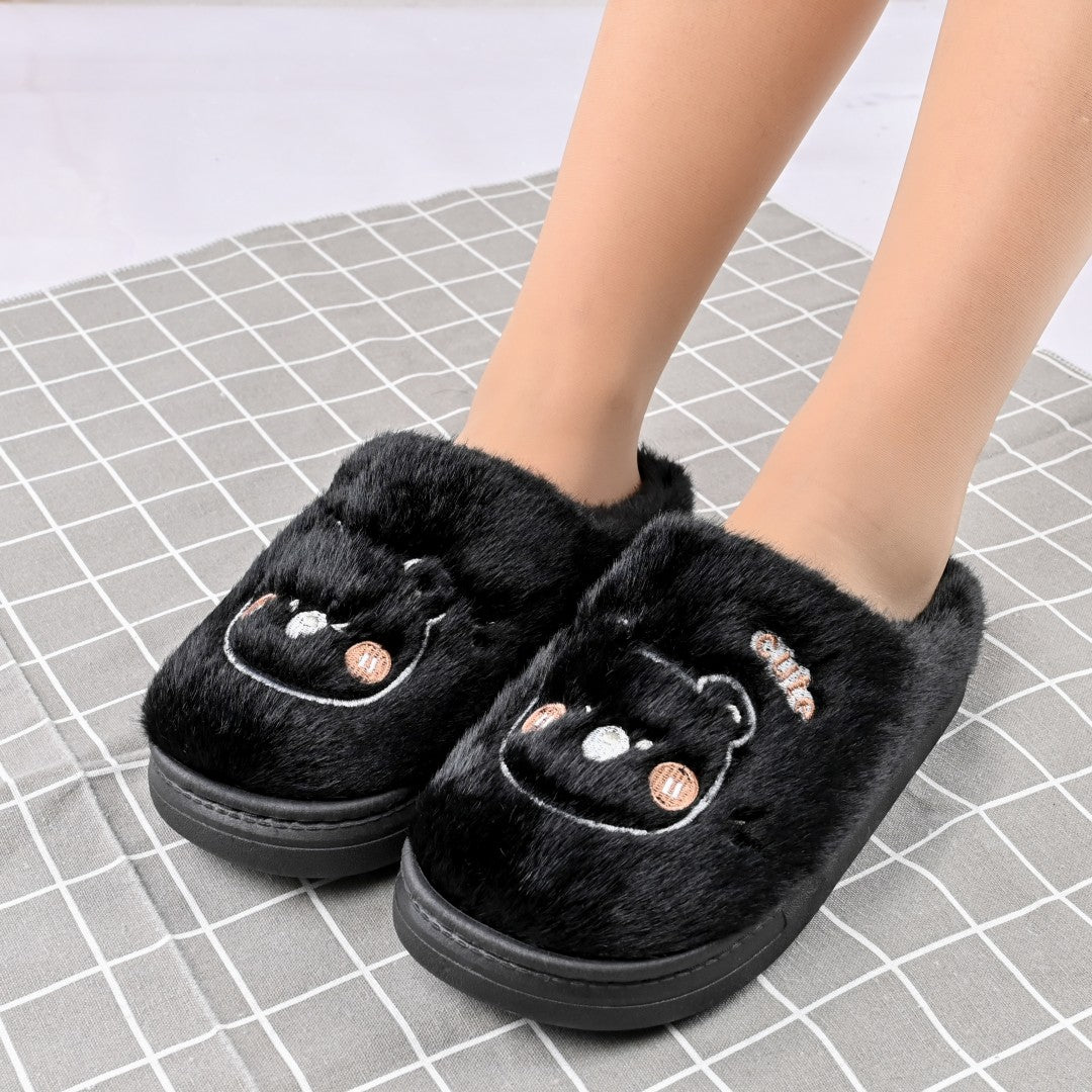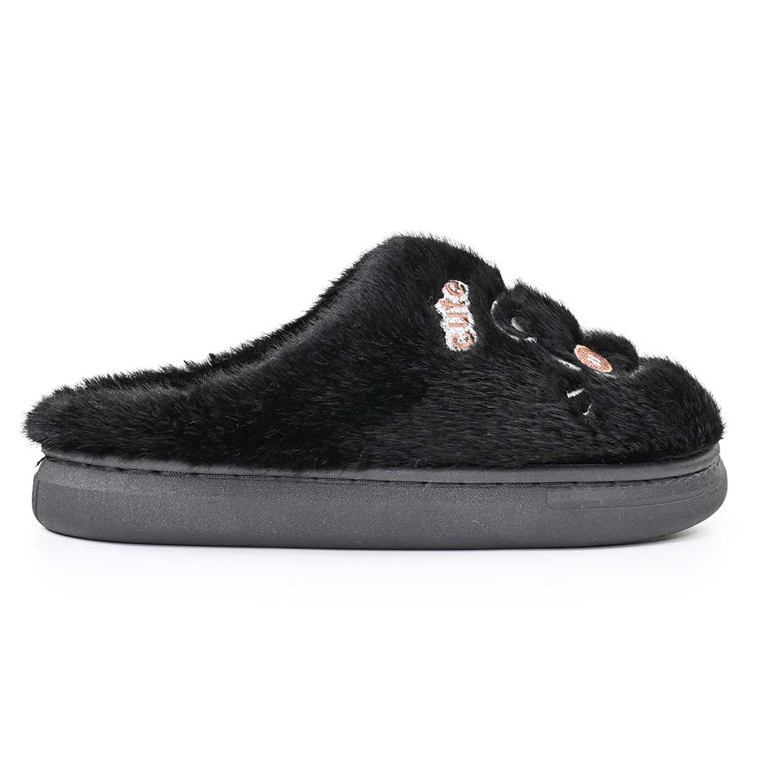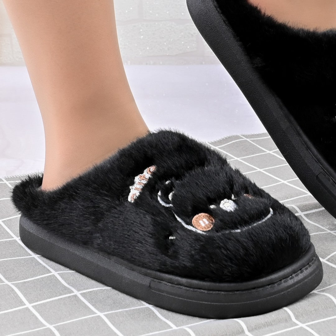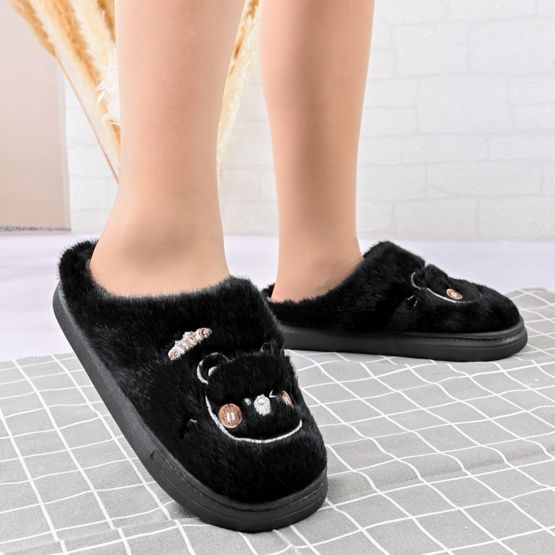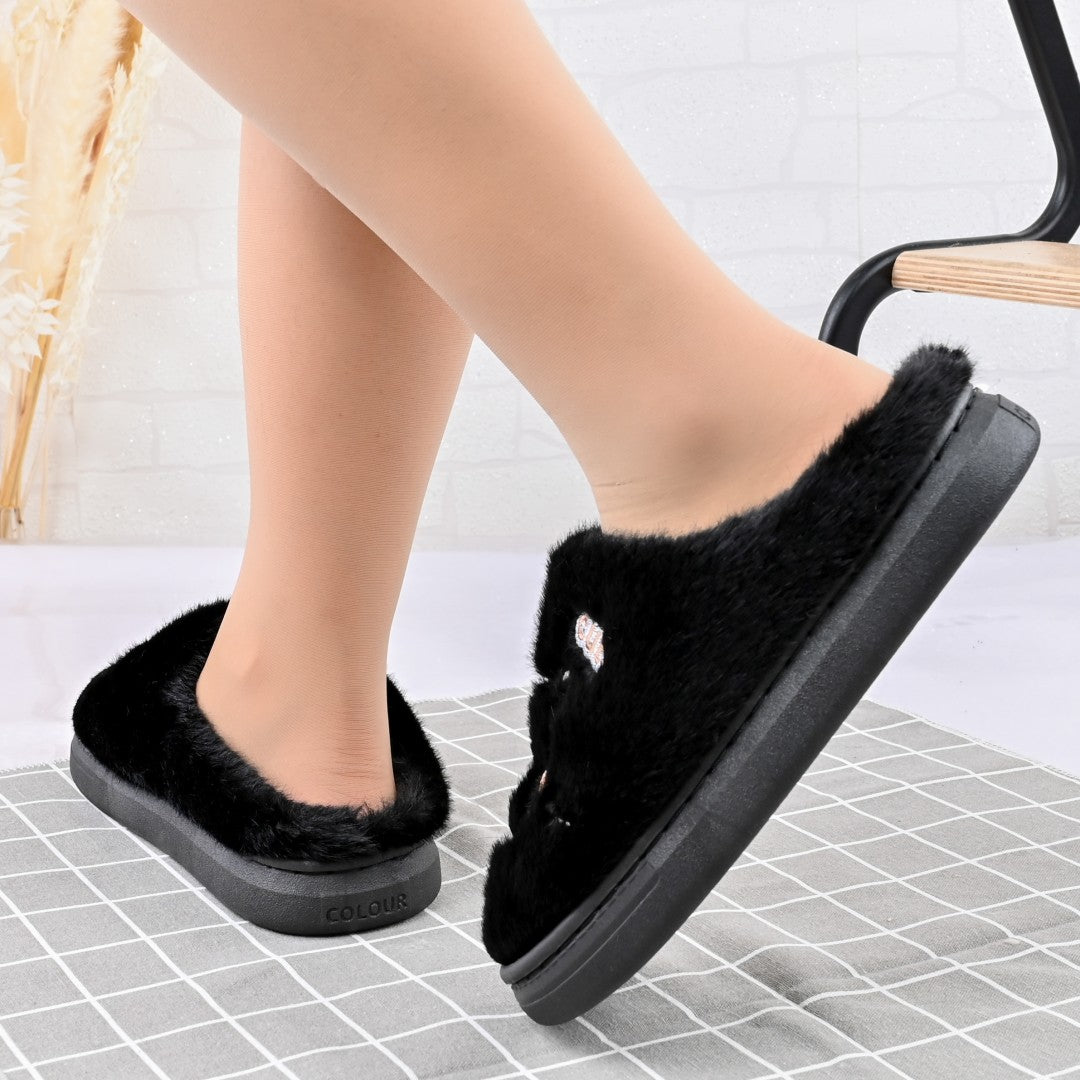 Papuci de casa Dama ,pufosi,cu Ursulet, Imblaniti,PD1067,Negru