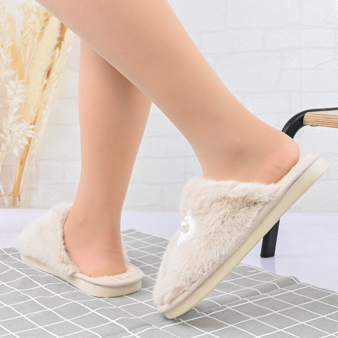 Papuci de casa Dama, pufosi,PD1055,Bej