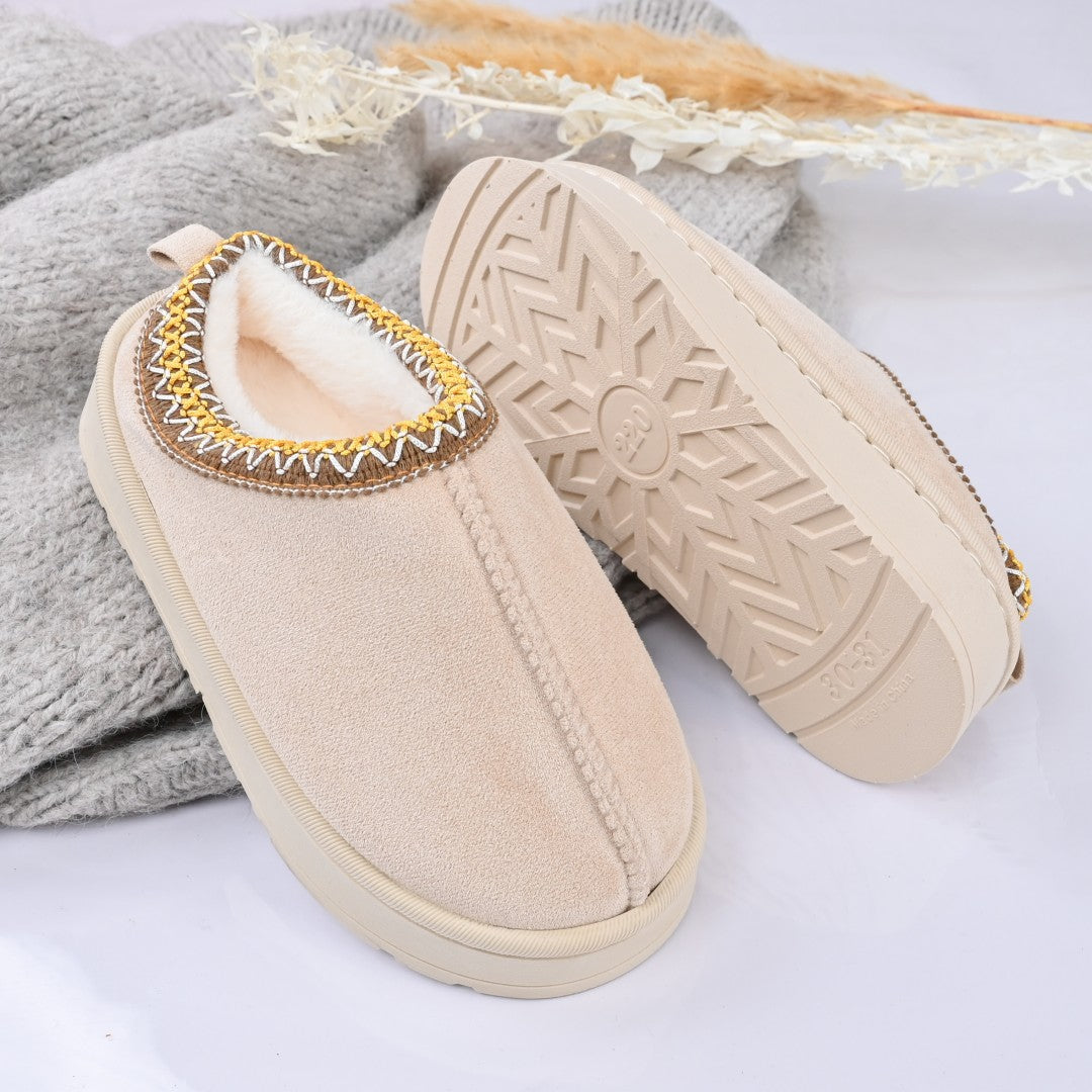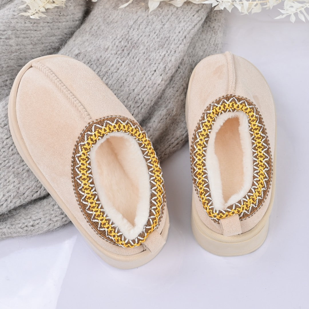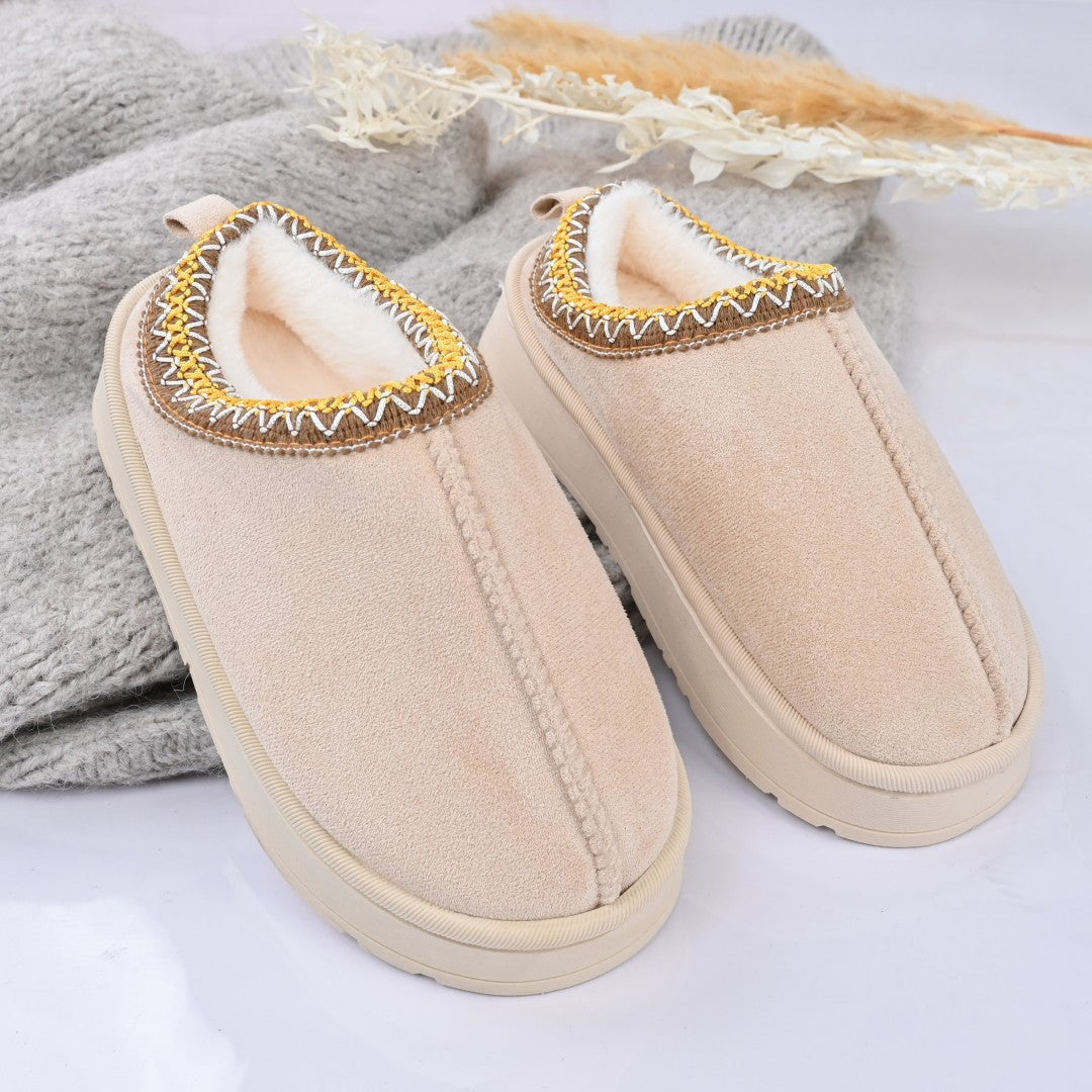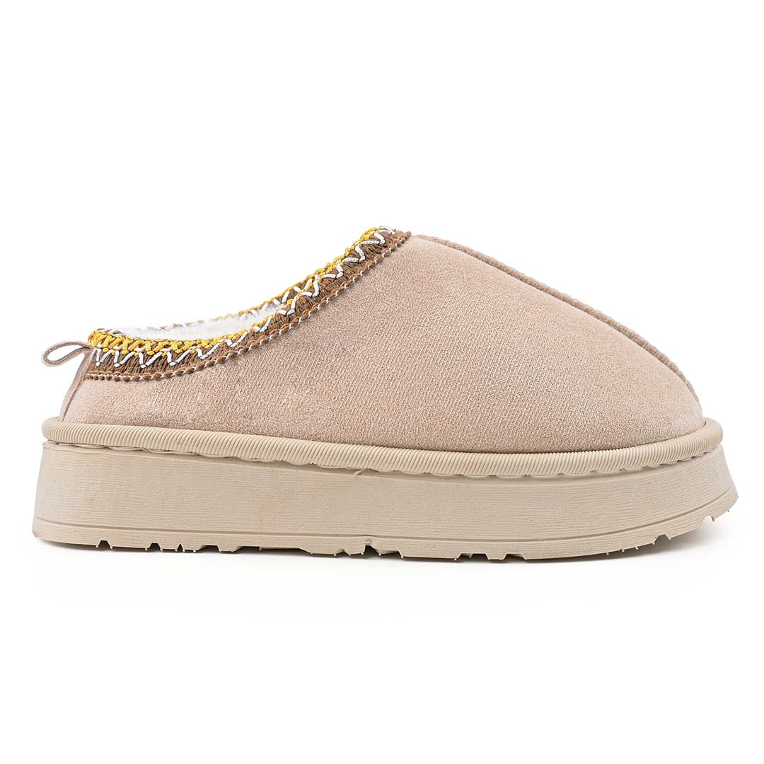 Papuci de casa Copii,Din Piele Ecologica Intoarsa, Imblaniti,PC07,Bej