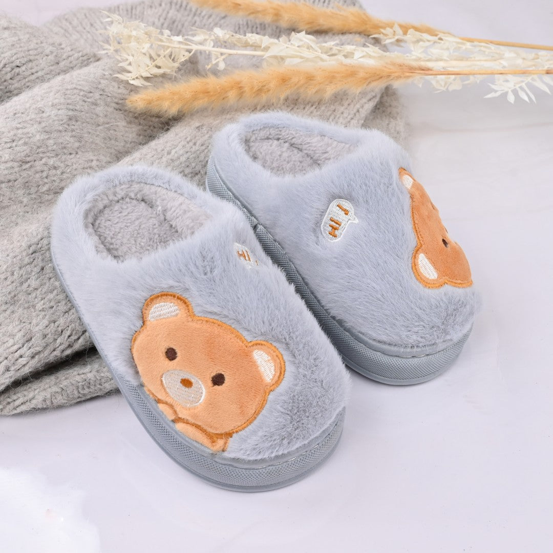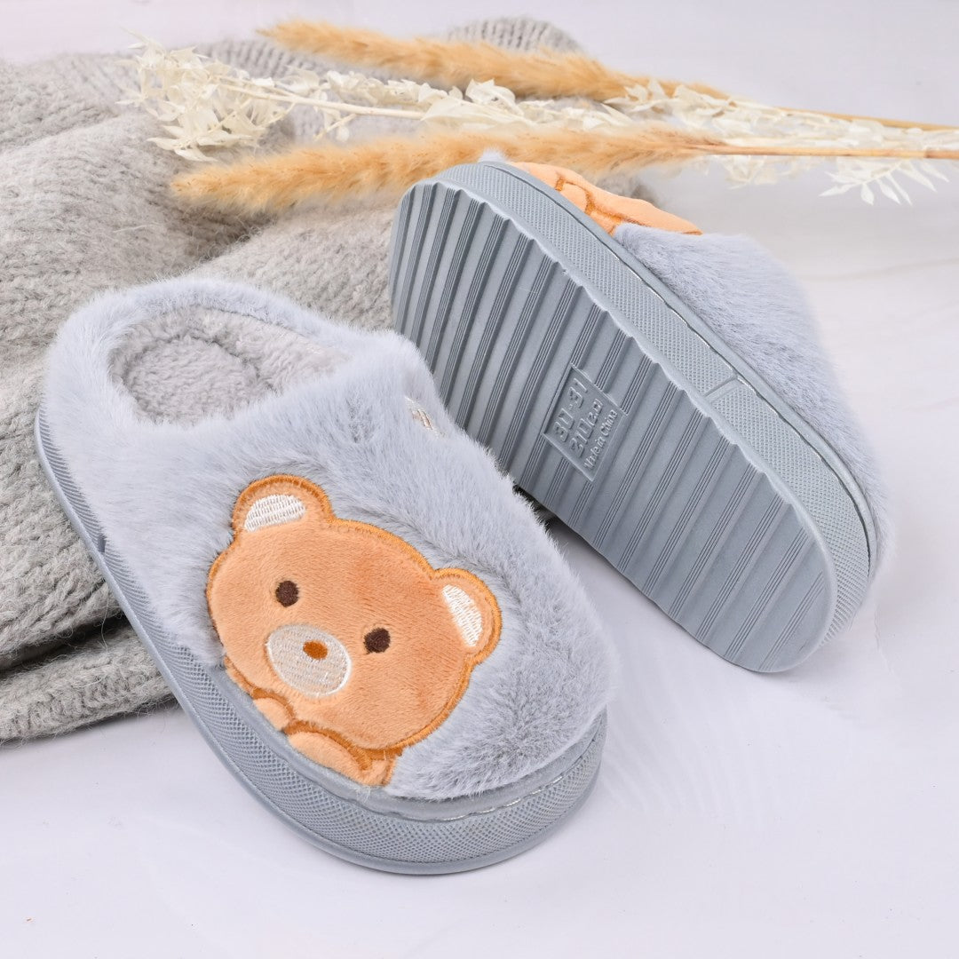 Papuci de casa Copii,Cu inorog/Ursulet,Imblaniti,PC06,Gri