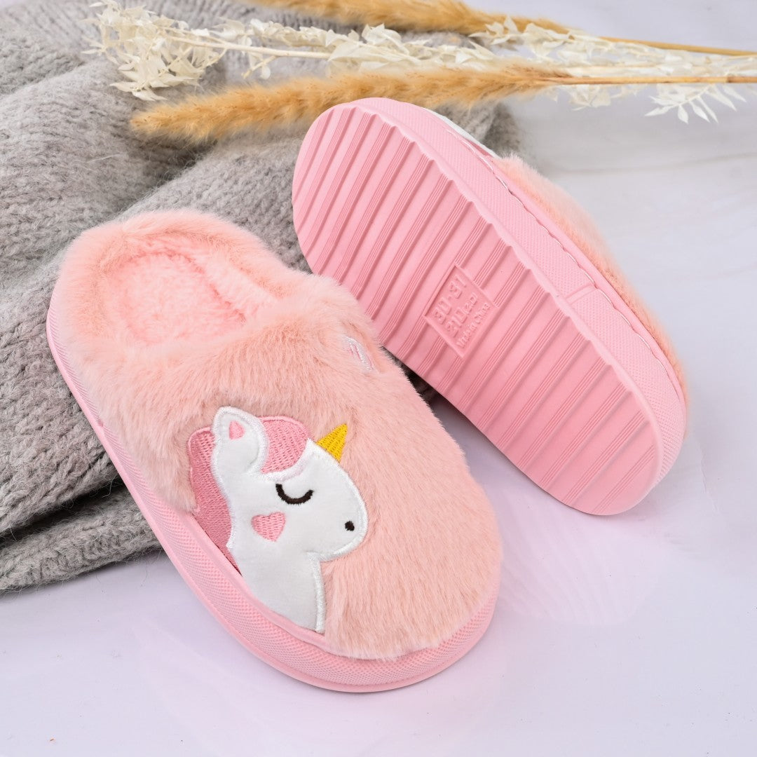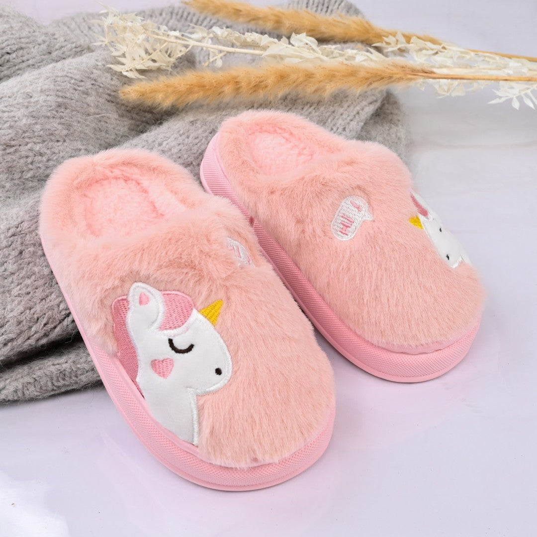 Papuci de casa Copii,pufosi,Cu inorog/Ursulet, Imblaniti,PC06,Roz