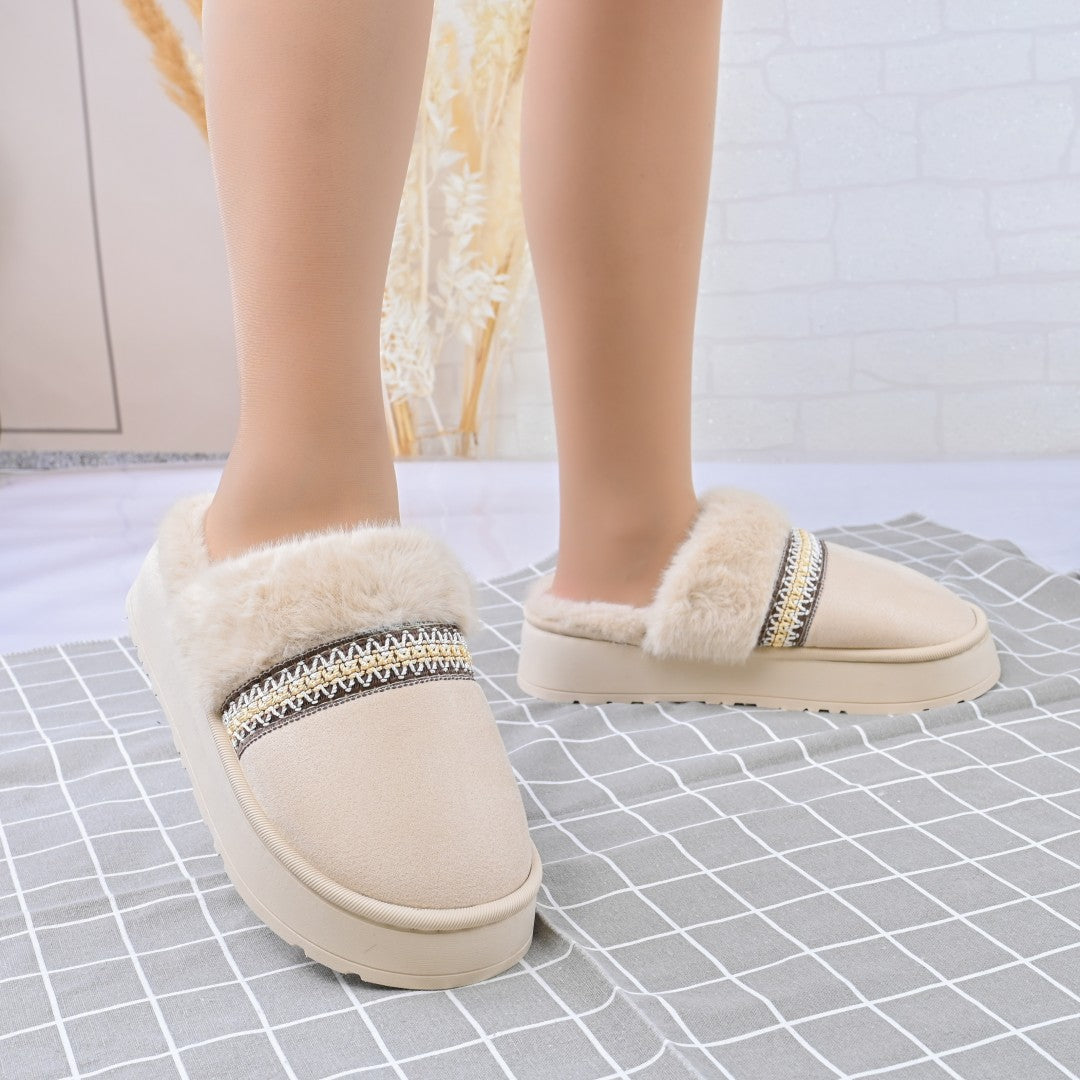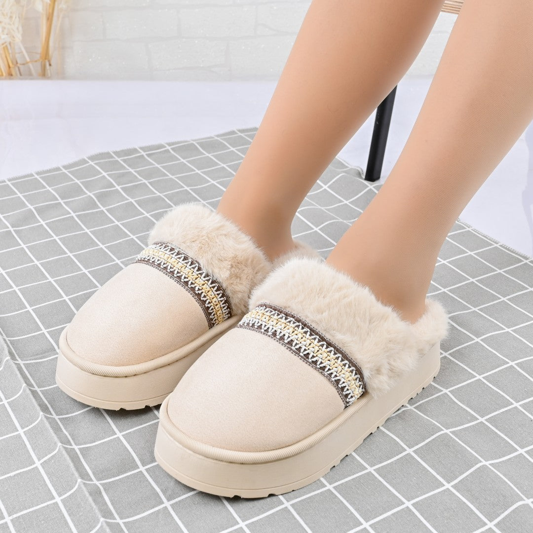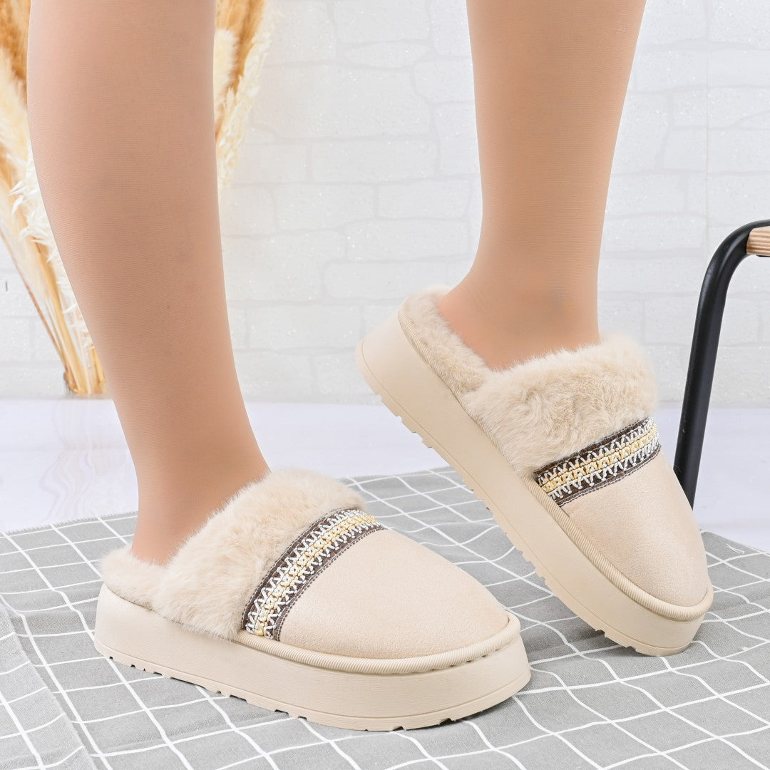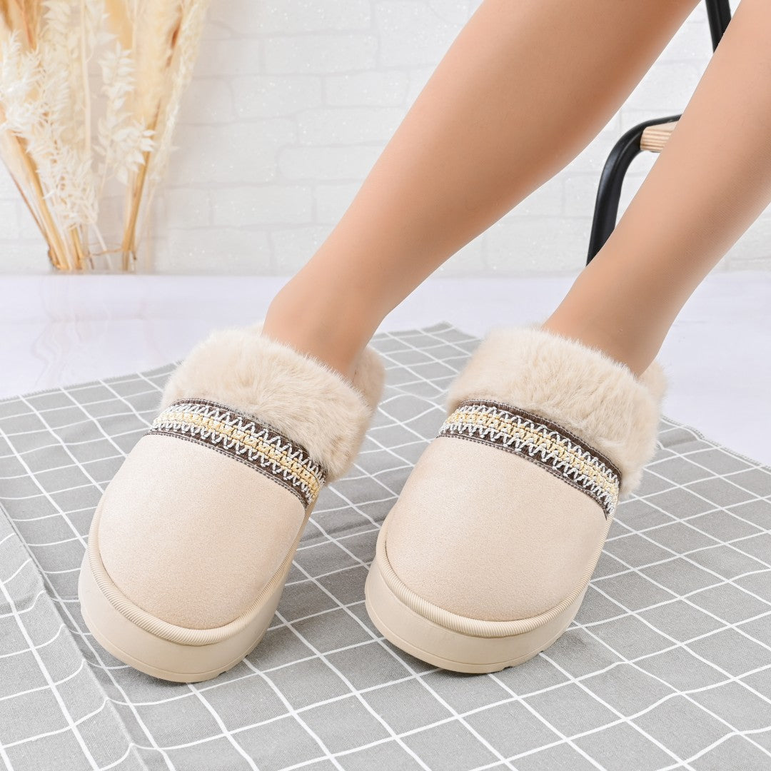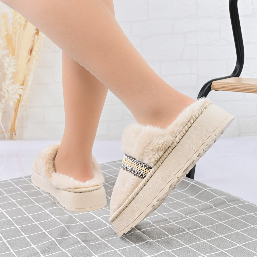 Papucii de damă din piele ecologică întoarsă, căptușiți cu blană artificială, oferă confort și eleganță pentru sezonul rece. Cu talpă...