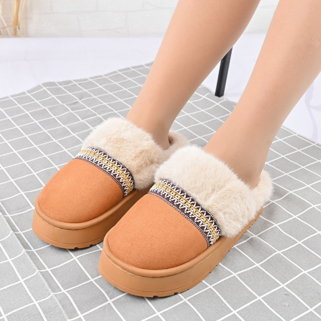 Papucii de damă din piele ecologică întoarsă, cu interior imblanit, oferă confort și stil în sezonul rece. Talia plată de...
