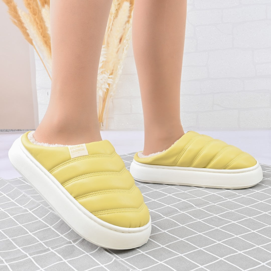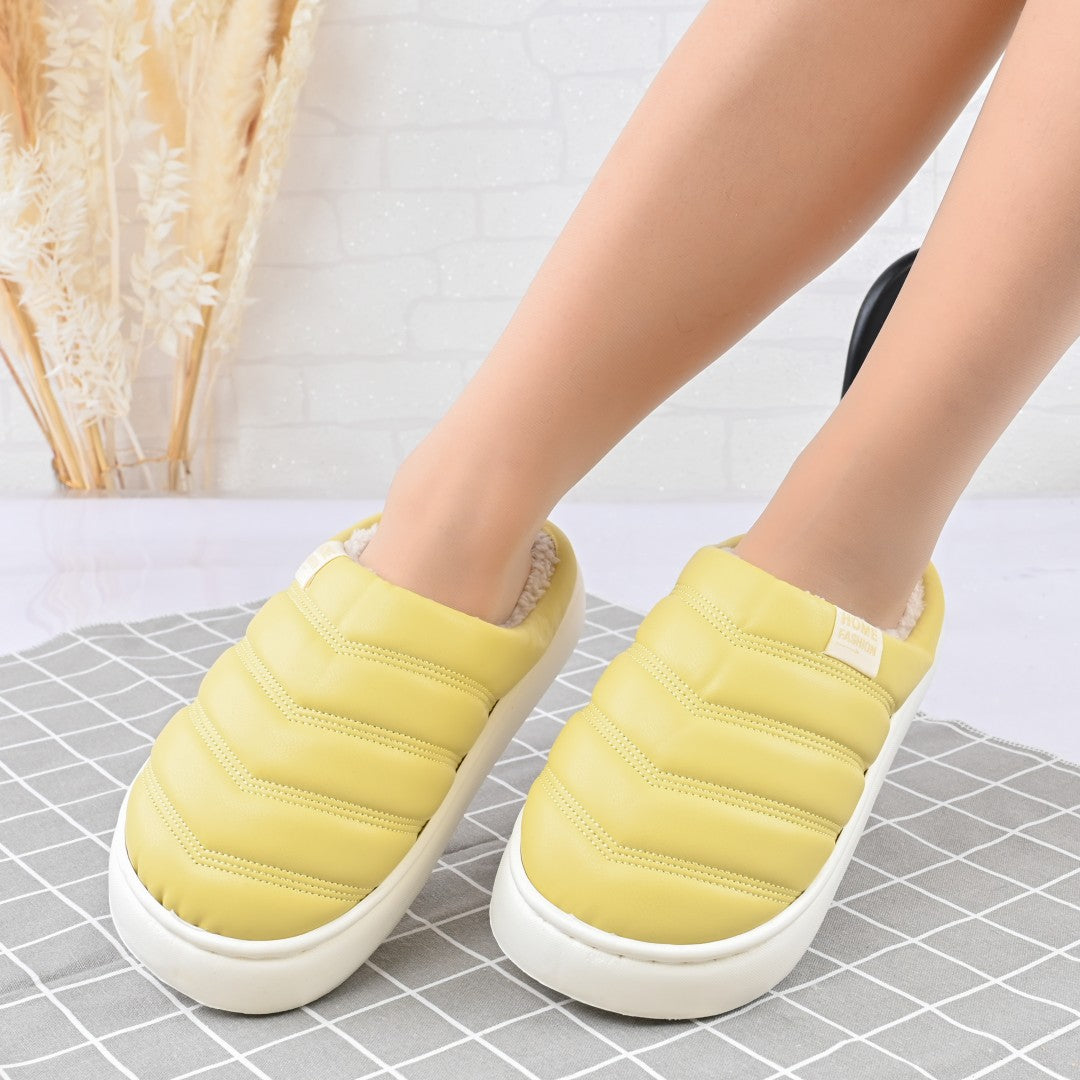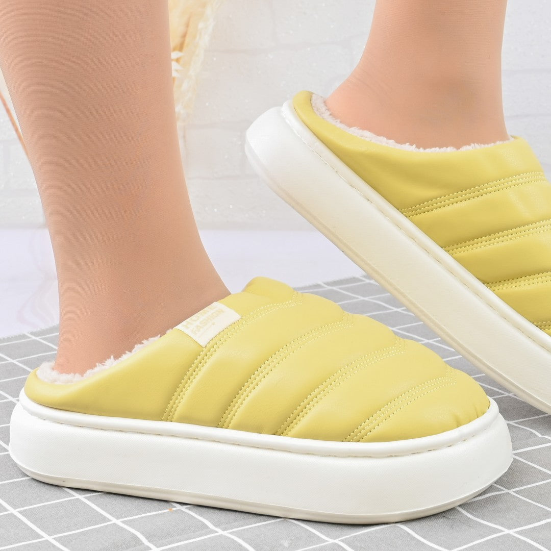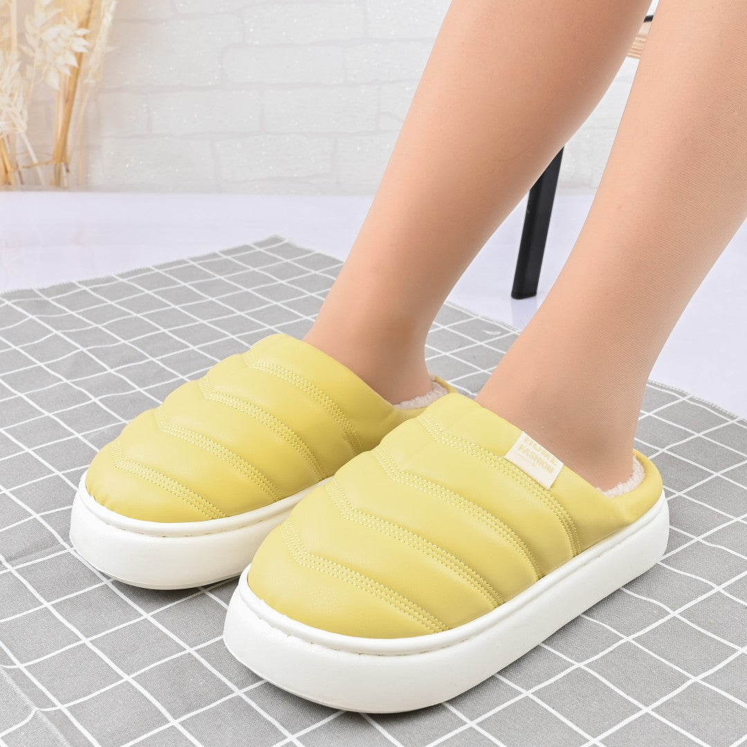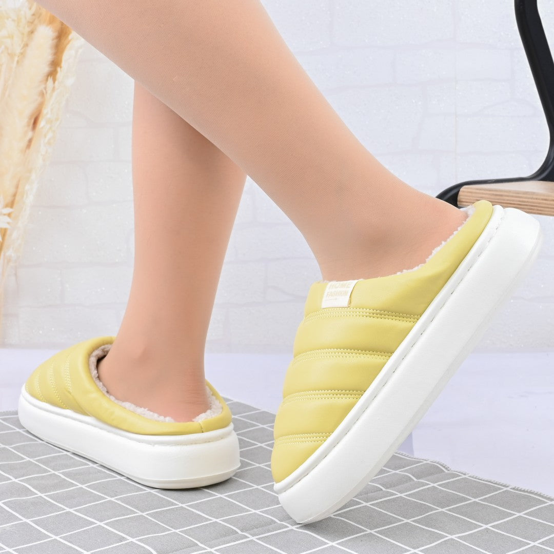 Papuci de casa Dama,Din Piele Ecologica,Cu Imblaniti,PD1060,Galben