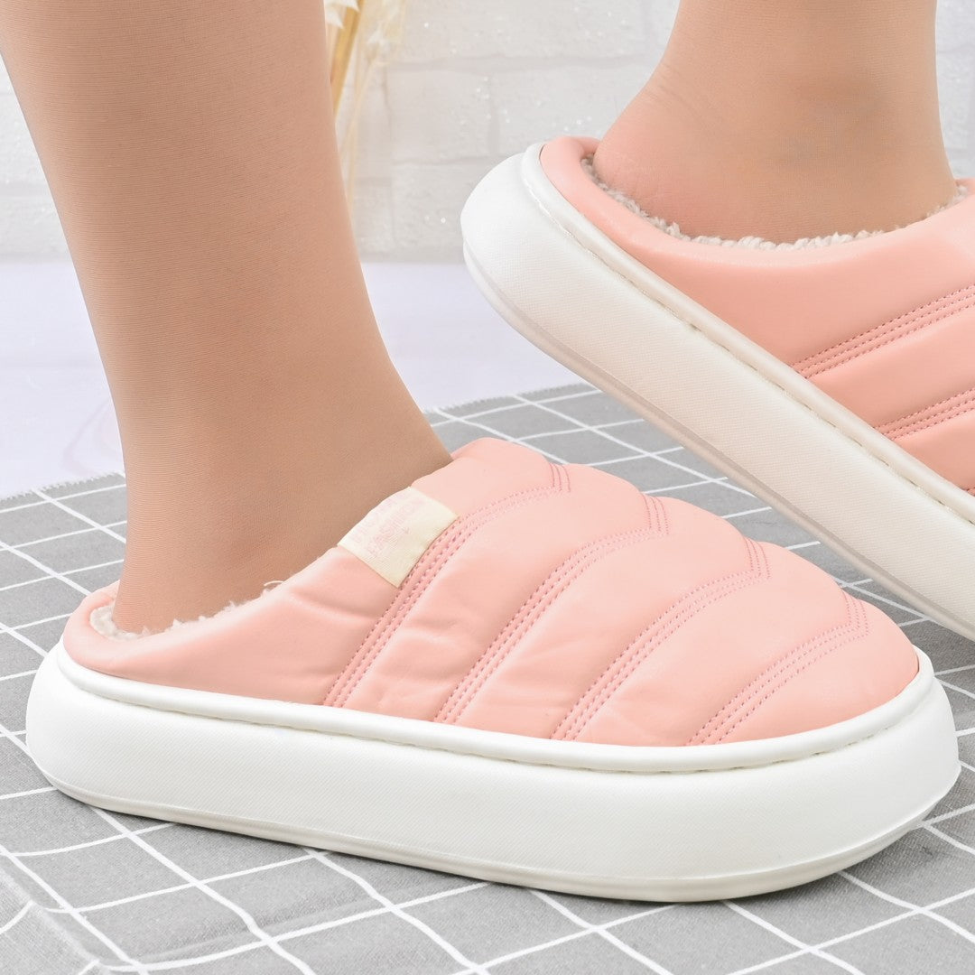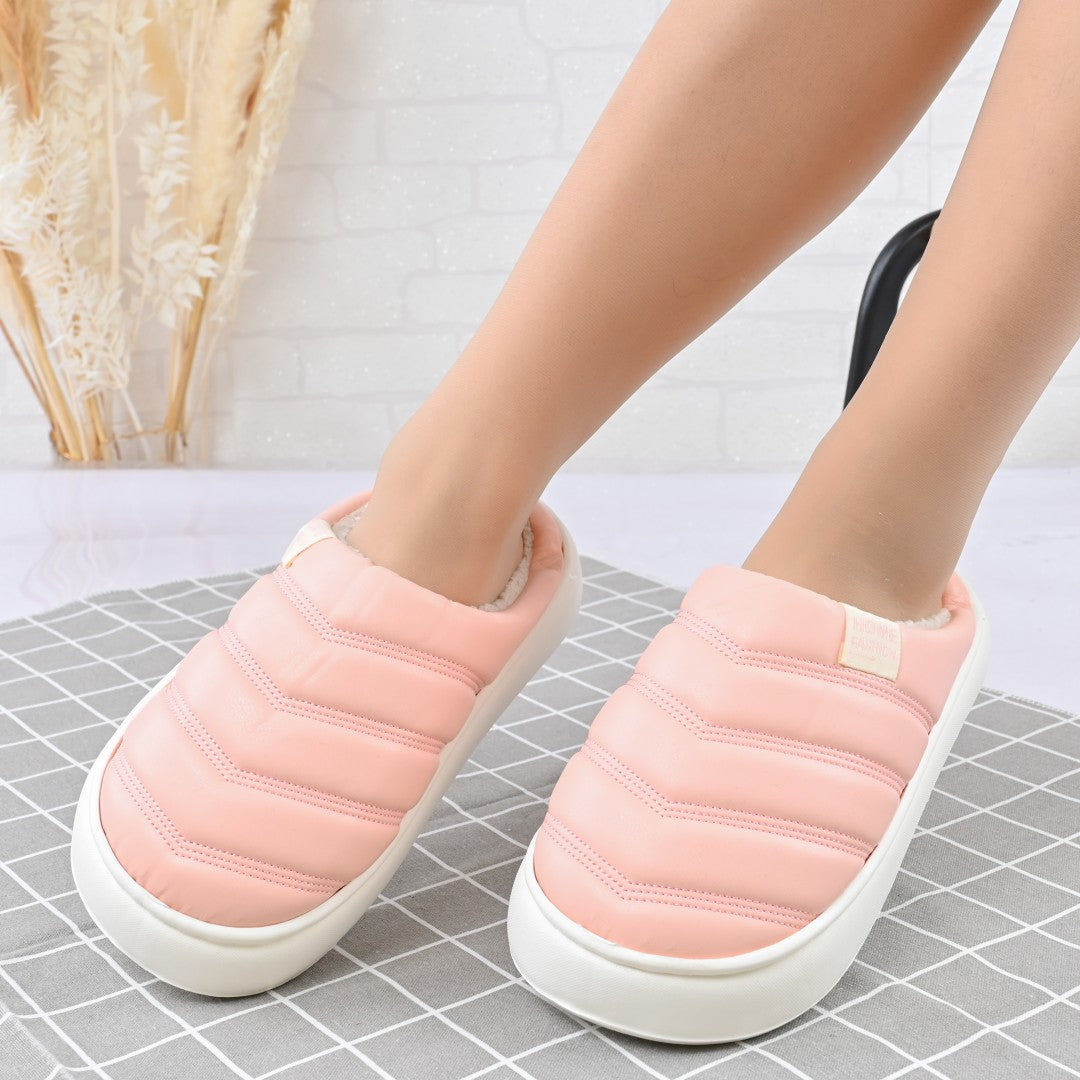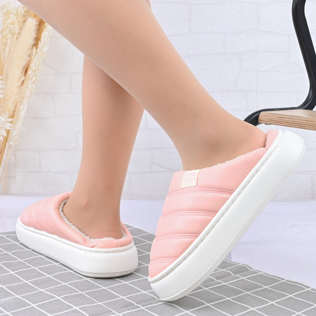 Papuci de casa Dama,Din Piele Ecologica,Cu Imblaniti,PD1060,Roz