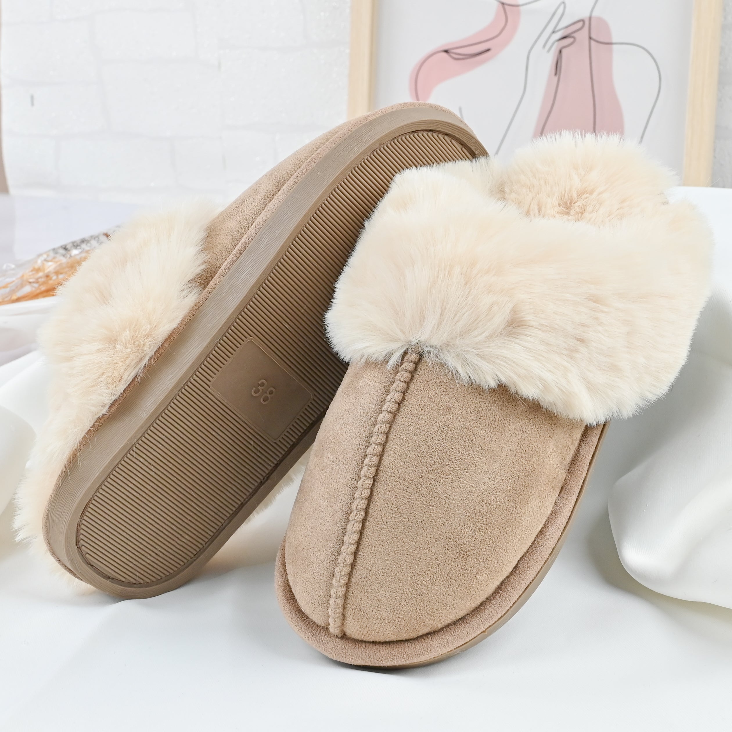 Papucii de damă din piele ecologică întoarsă, în nuanța kaki, combină stilul și confortul. Cu interior imblănit, talpă din TPU...
