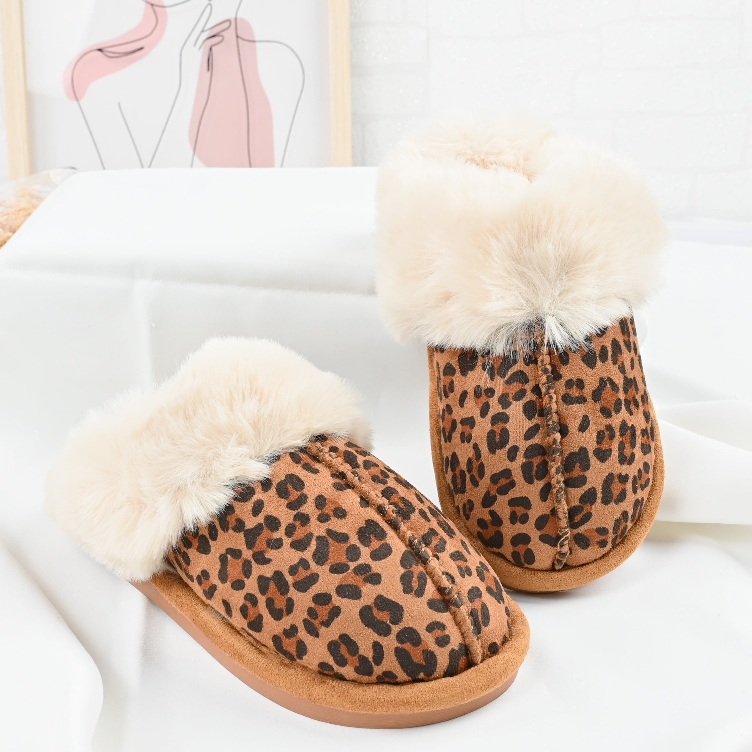 Papuci de Dama,Din Piele Ecologica Intoarsa, Imblaniti,PD1070,Leopard