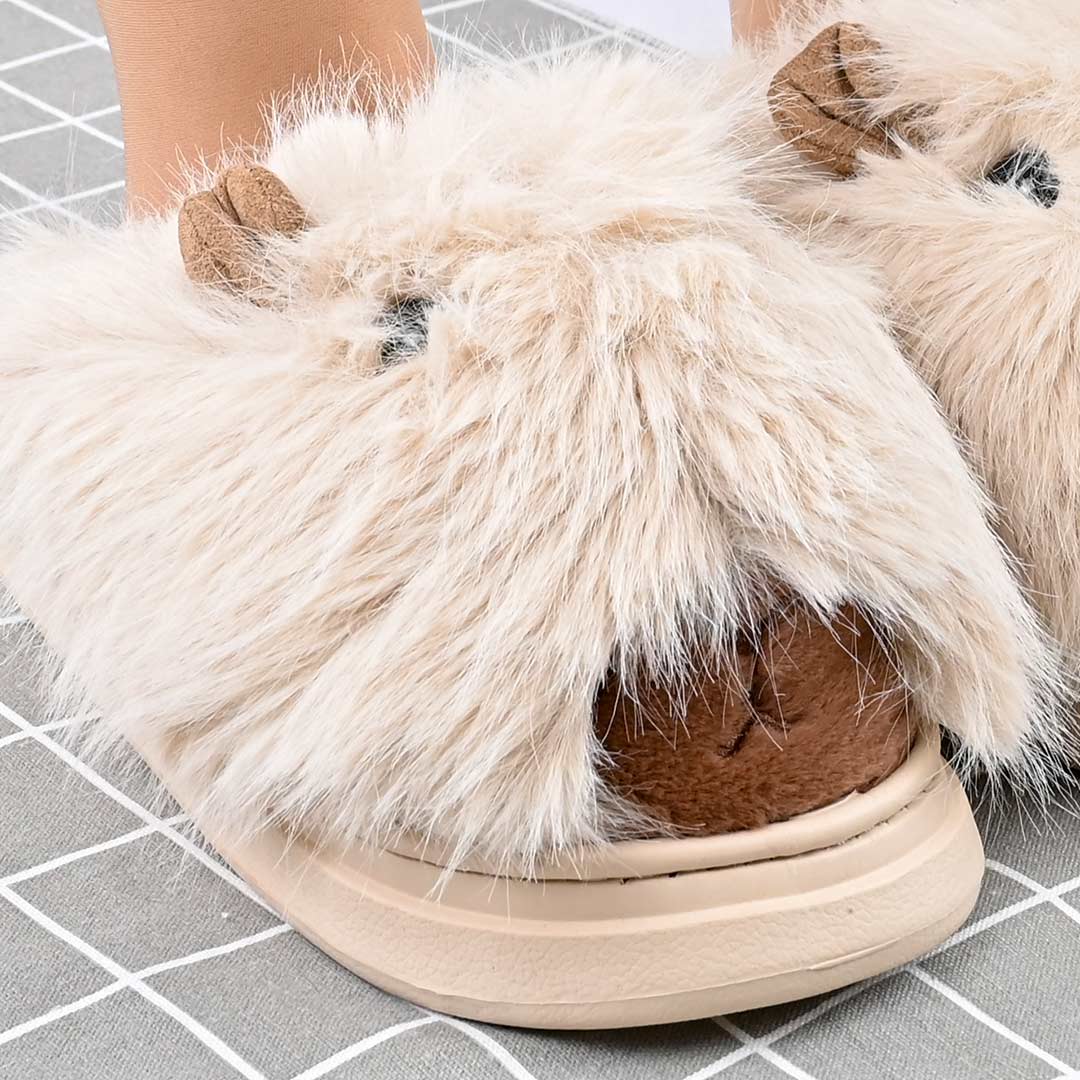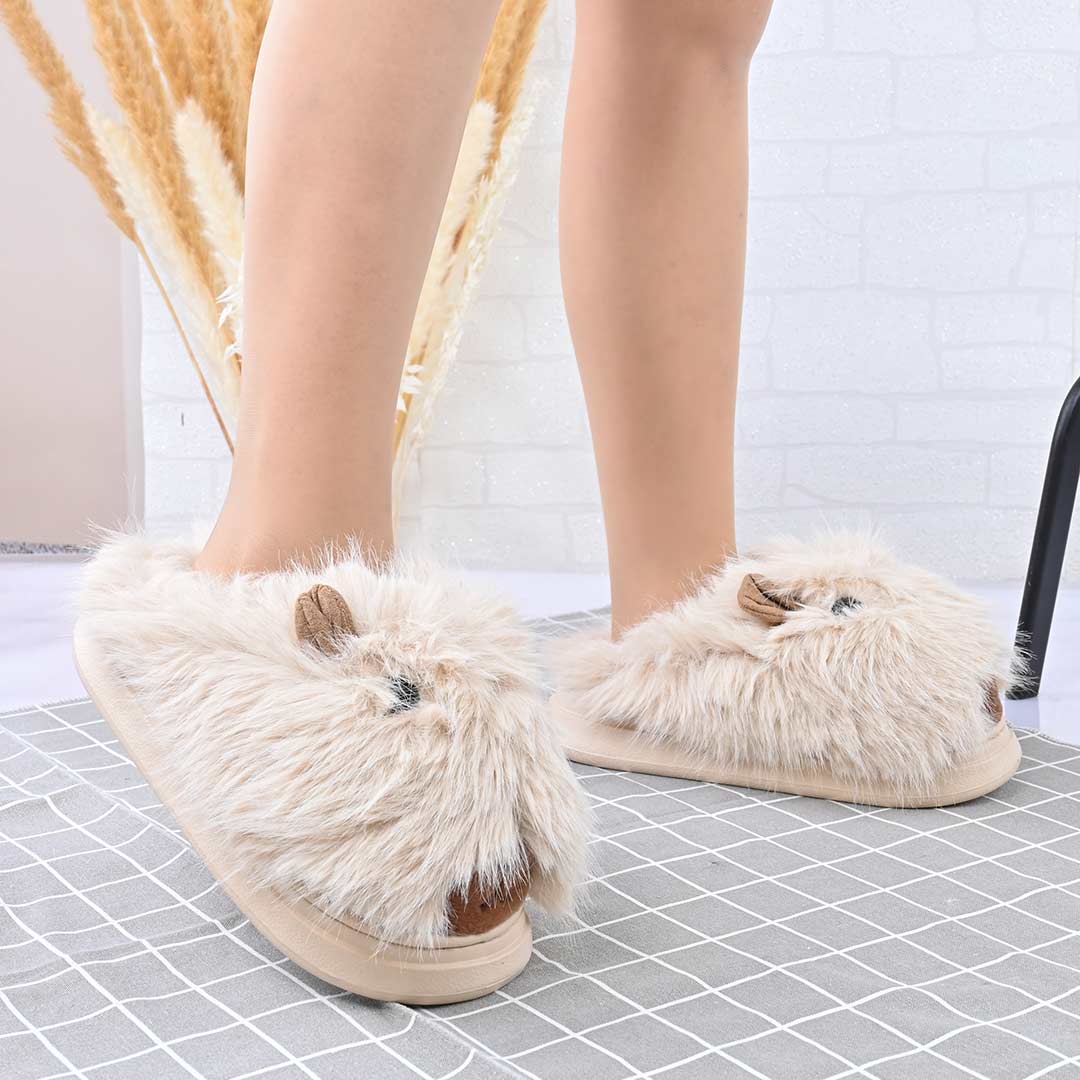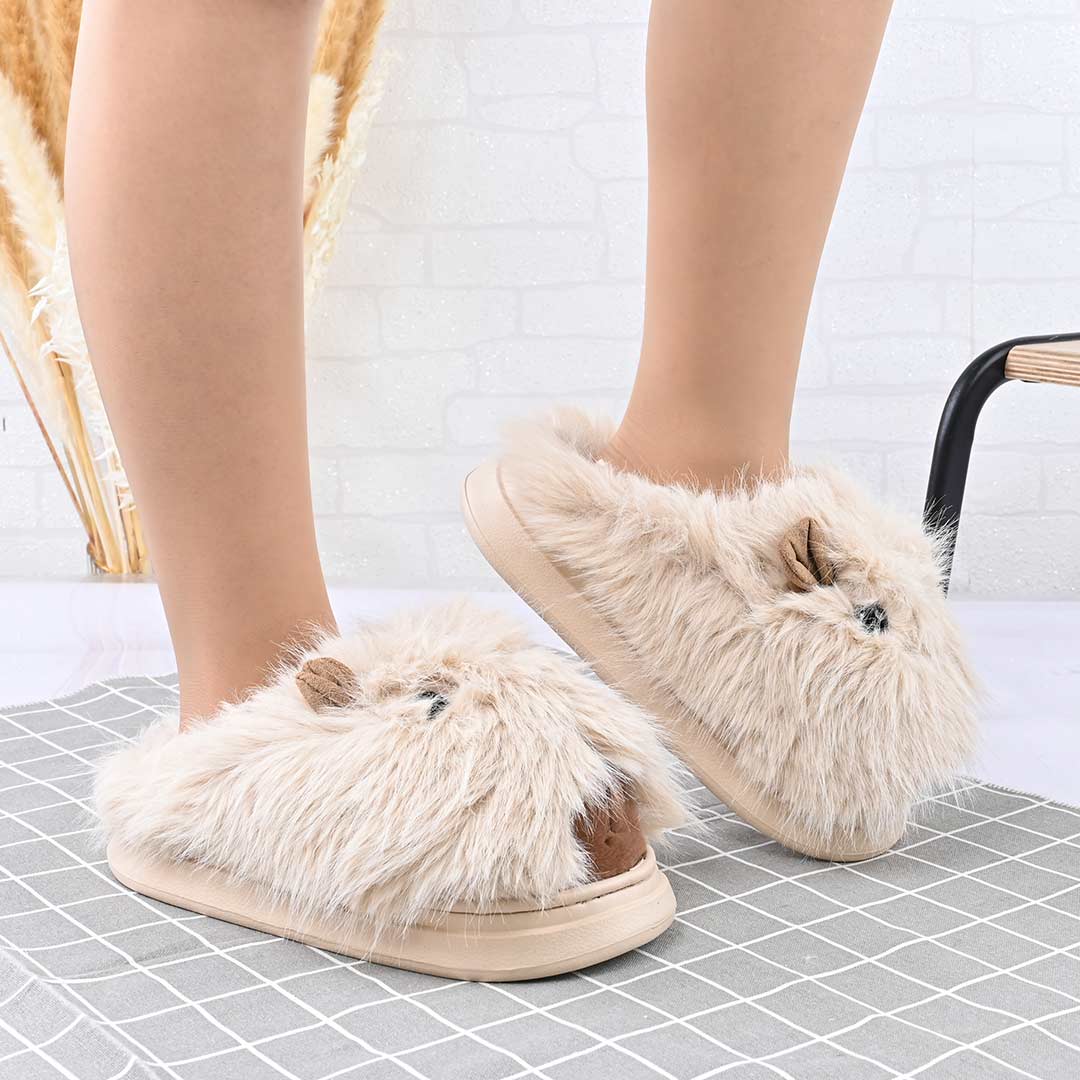 Papuci de casa Dama,Pufosi cu capybara,Cu Imblaniti,PD1053,Bej