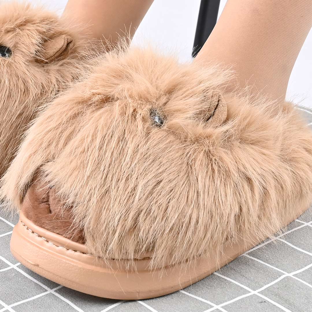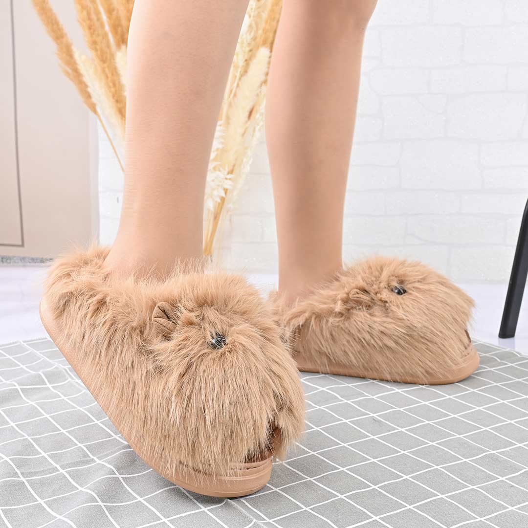 Papucii de damă Pufosi cu capybara, confecționați din blană artificială, oferă confort și căldură în sezonul rece. Cu interior imblanit...