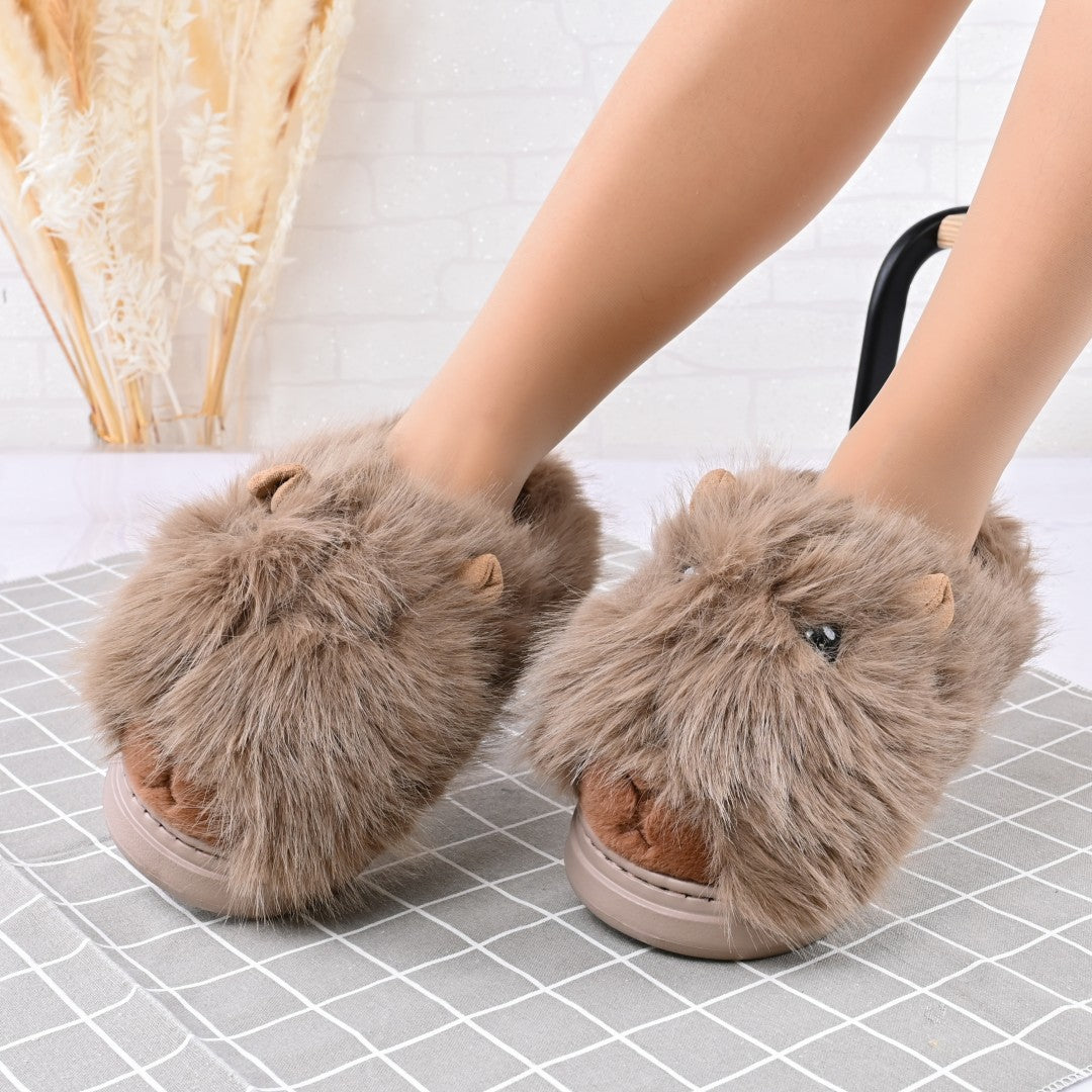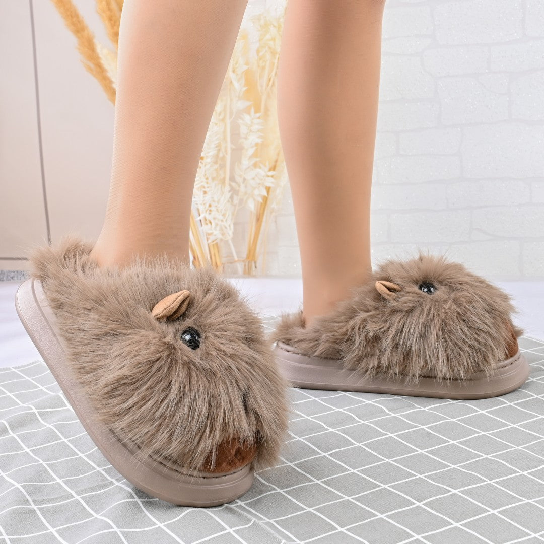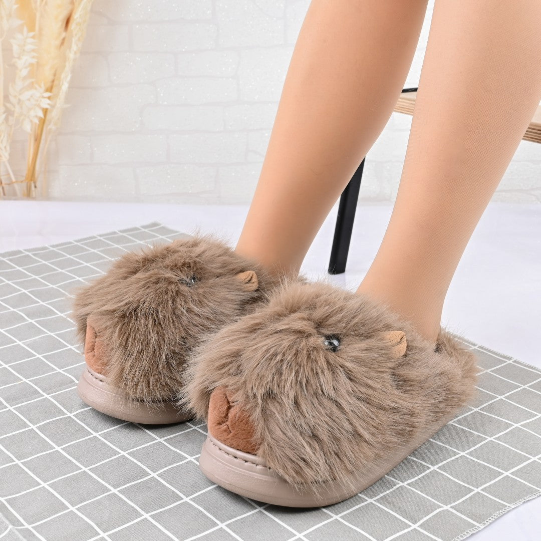 Papuci de casa Dama,Pufosi cu capybara,Cu Imblaniti,PD1053,Kaki