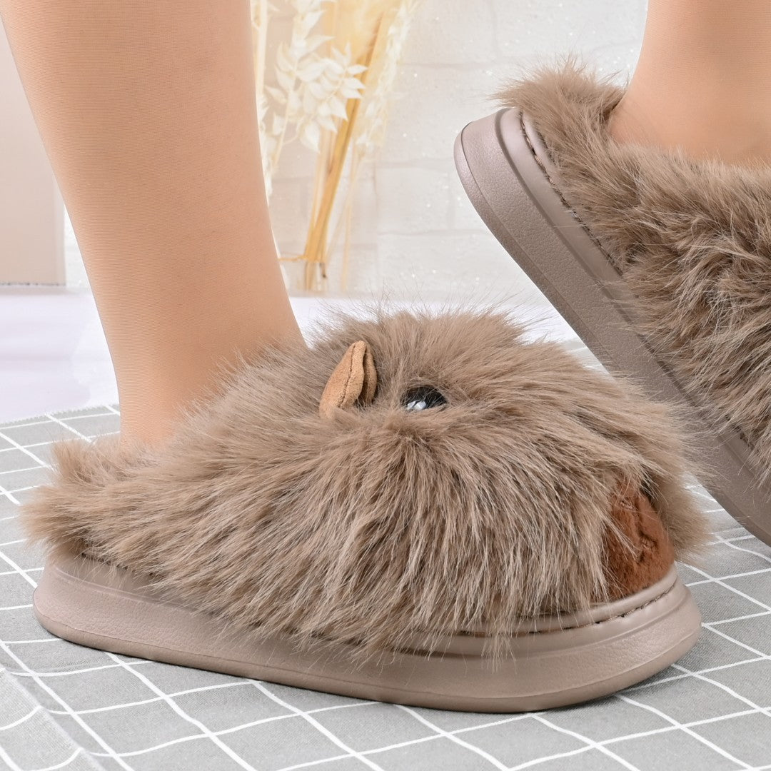 Papucii de damă Pufosi cu capybara, în nuanța kaki, sunt ideali pentru sezonul rece. Realizați din blană artificială și cu...