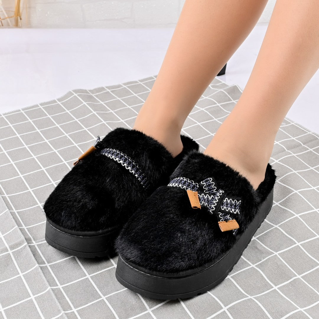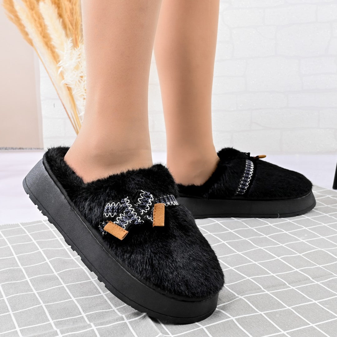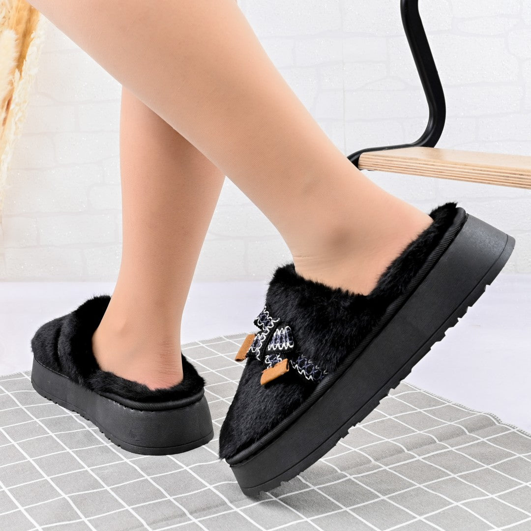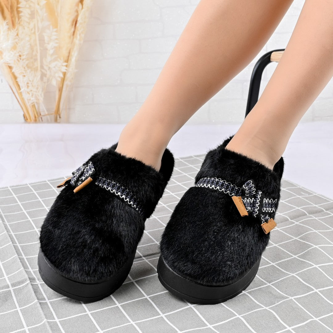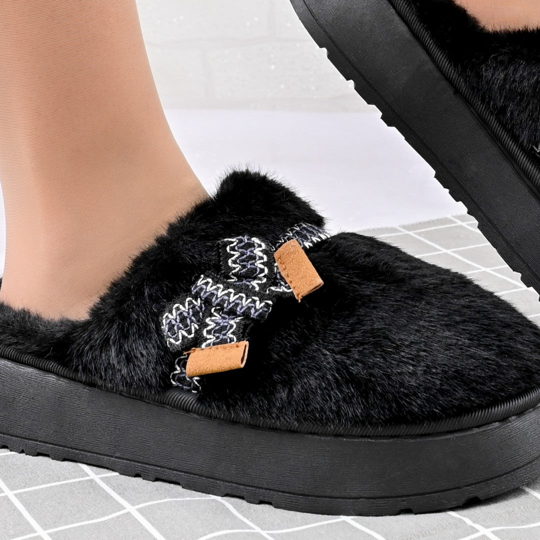 Papuci de casa Dama,Pufosi cu papion, Imblaniti,PD1061,Negru